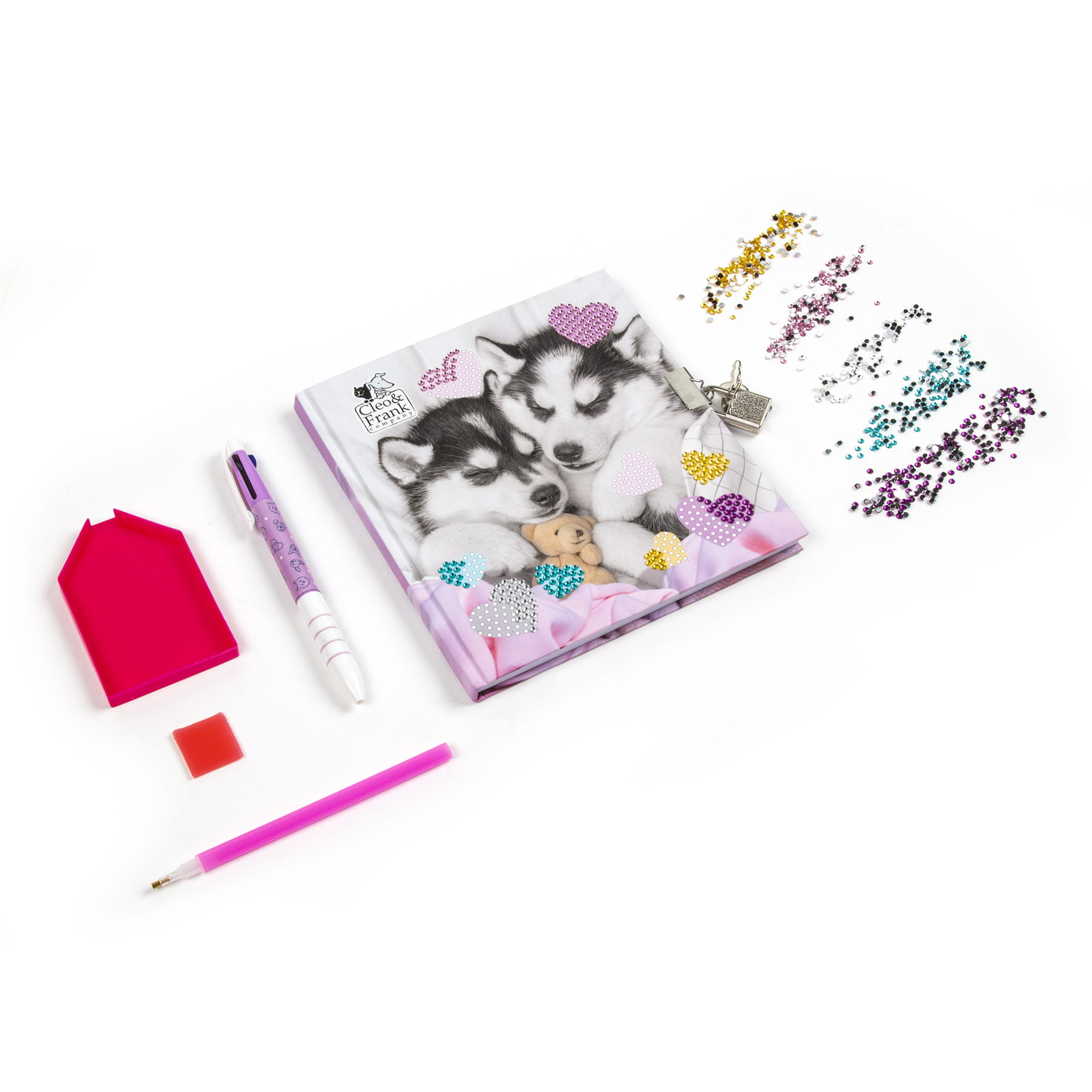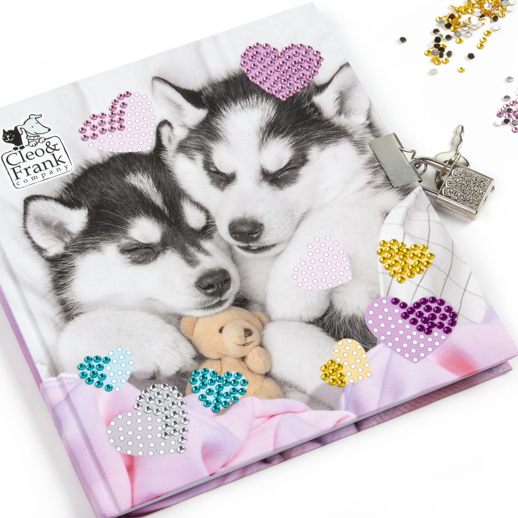 Diamentowy pamiętnik z kłódką + długopis 3 kolorowy Cleo i Frank 38 (Pies)