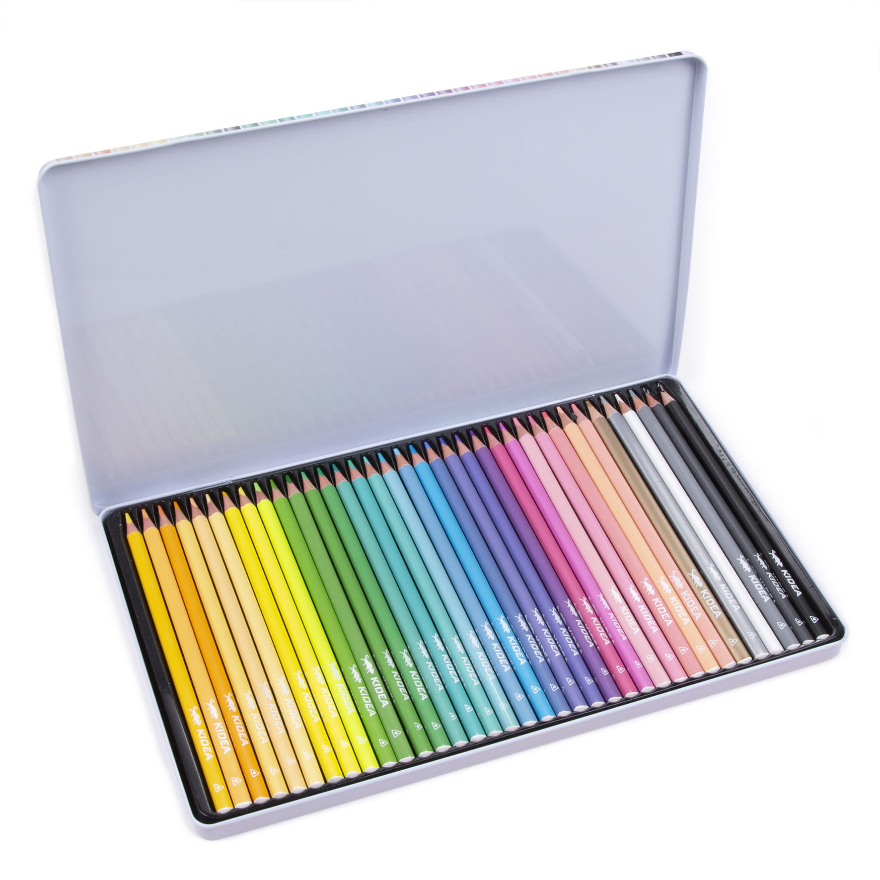 Kredki pastelowe trójkątne w metalowym pudełku 36 kolorów Kidea