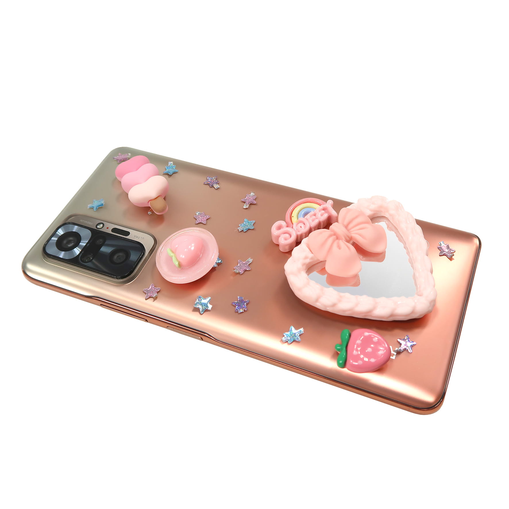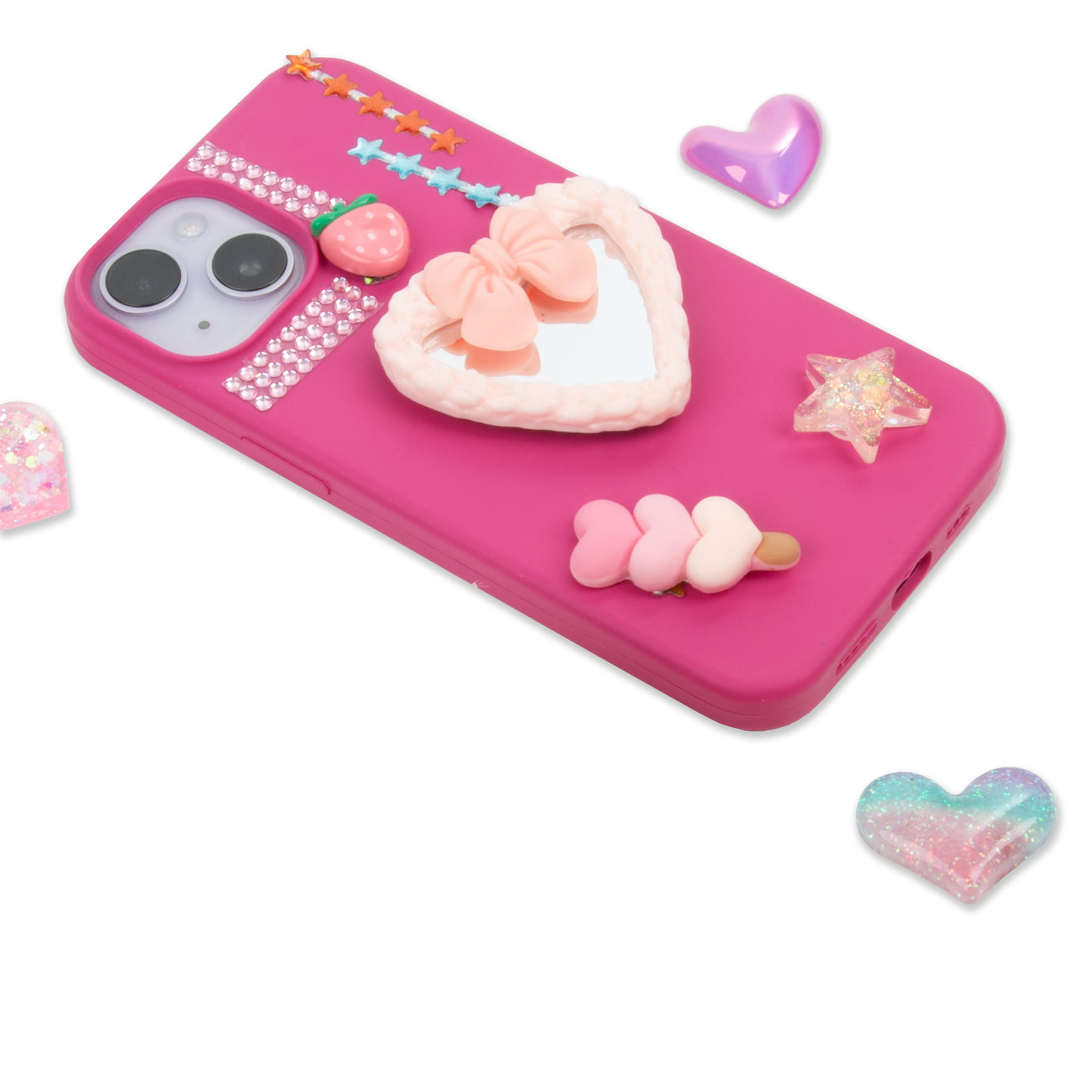 Naklejki na telefon Sweet sprawią, że etui telefonu nabierze nowego, oryginalnego i słodkiego wyrazu! 6 dużych naklejek: truskawka, brzoskwinia, donut, serduszka, tęcza i małe lusterko oraz wiele mniejszych naklejek gwiazdek pozwala stworzyć jedyną w swoim rodzaju kombinację. Wystarczy dać się ponieść swojej kreatywności i stworzyć wyjątkowy układ, następnie przykleić większe naklejki, a mniejsze gwiazdki wyciąć nożyczkami wedle uznania. Tak przyozdobione etui do telefonu zachwyci każdego i doda wyjątkowości. Naklejki są wytrzymałe i trwale przyklejają się do powierzchni etui. Idealnie sprawdzą się jako prezent dla nowoczesnej i stylowej dziewczynki.