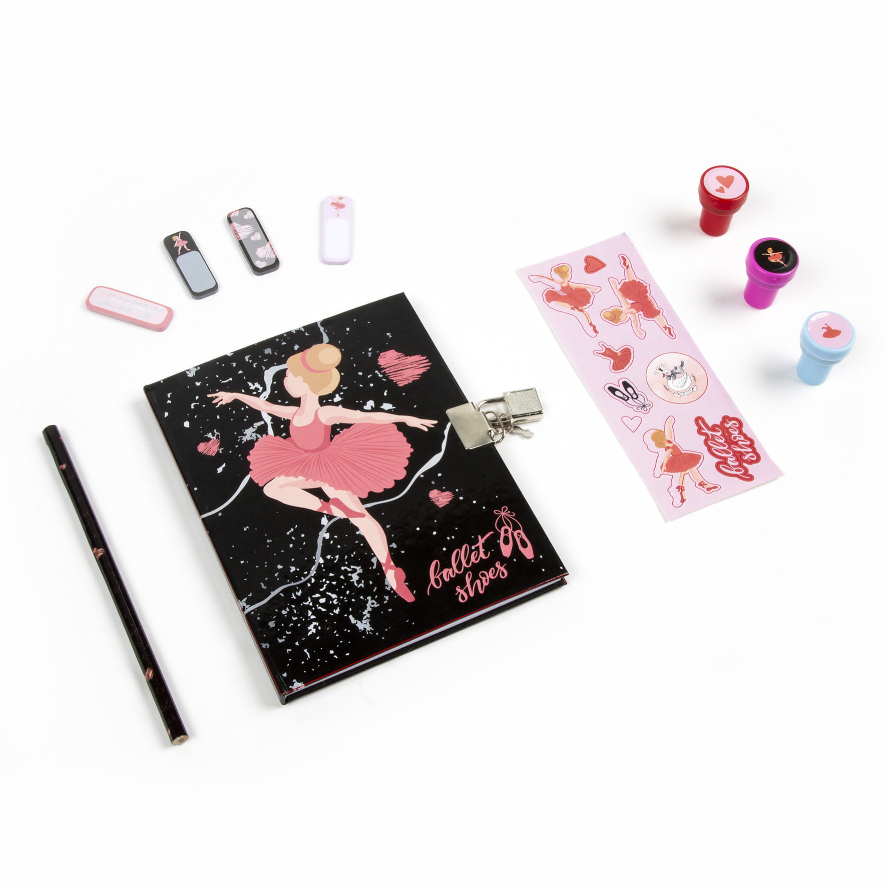 Pamiętnik z kłódką i stempelkami + zestaw przyborów Baletnica 11