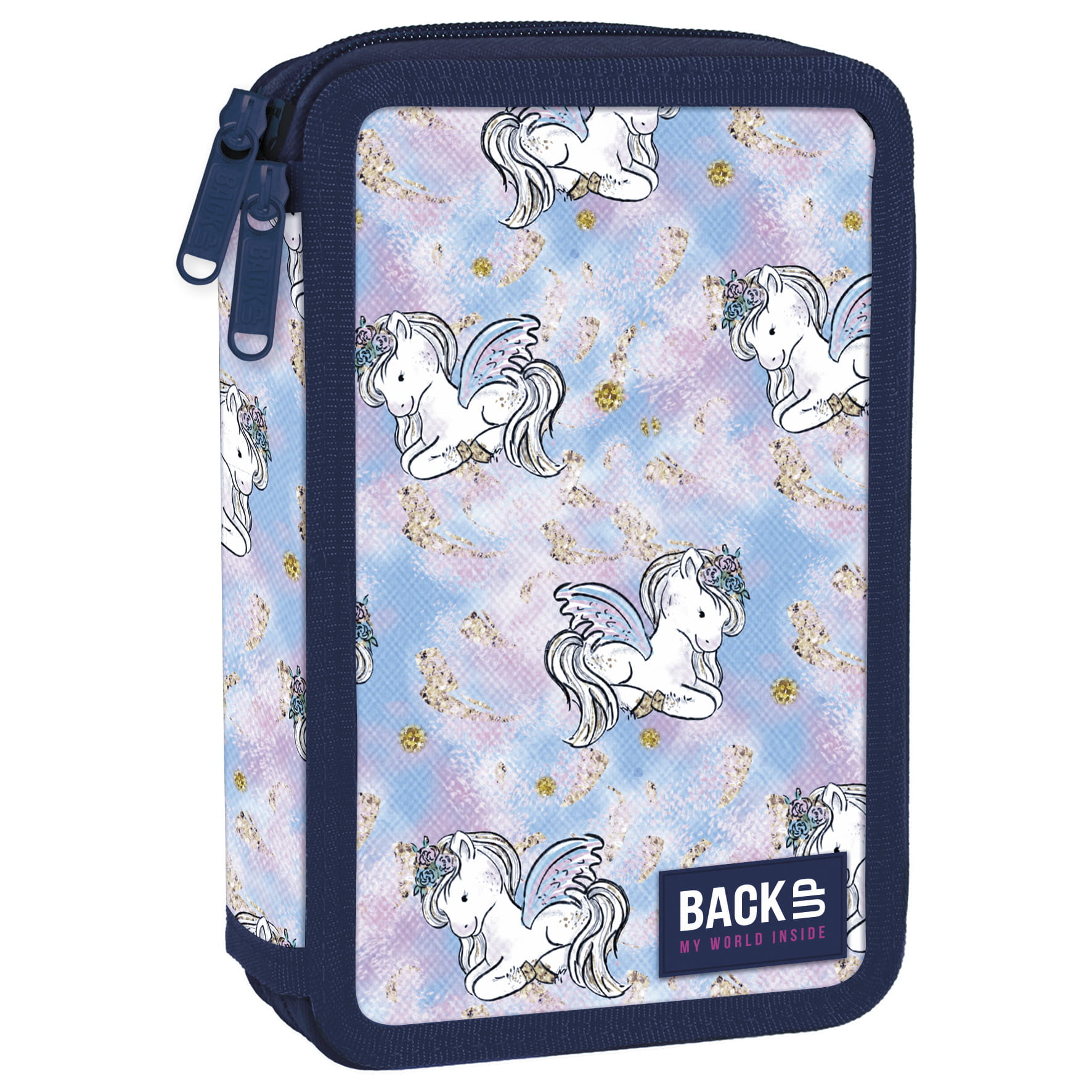 Zaczarowany pegaz, czyli bajkowy rumak ze skrzydłami stał się w ostatnich latach niekwestionowanym ulubieńcem wszystkich dziewczyn. Stanowił on inspirację do stworzenia tej kolekcji piórników. W tym wydaniu pojawił się na tle niebieskiego nieba z bajecznymi różowymi chmurami, które kojarzą się ze słodką watą cukrową. Dodatkowo uzupełniony złotym pyłem. Dzięki temu zyskuje on magiczny efekt rodem z zaczarowanej krainy baśni. Dwukomorowy piórnik z wyposażeniem: