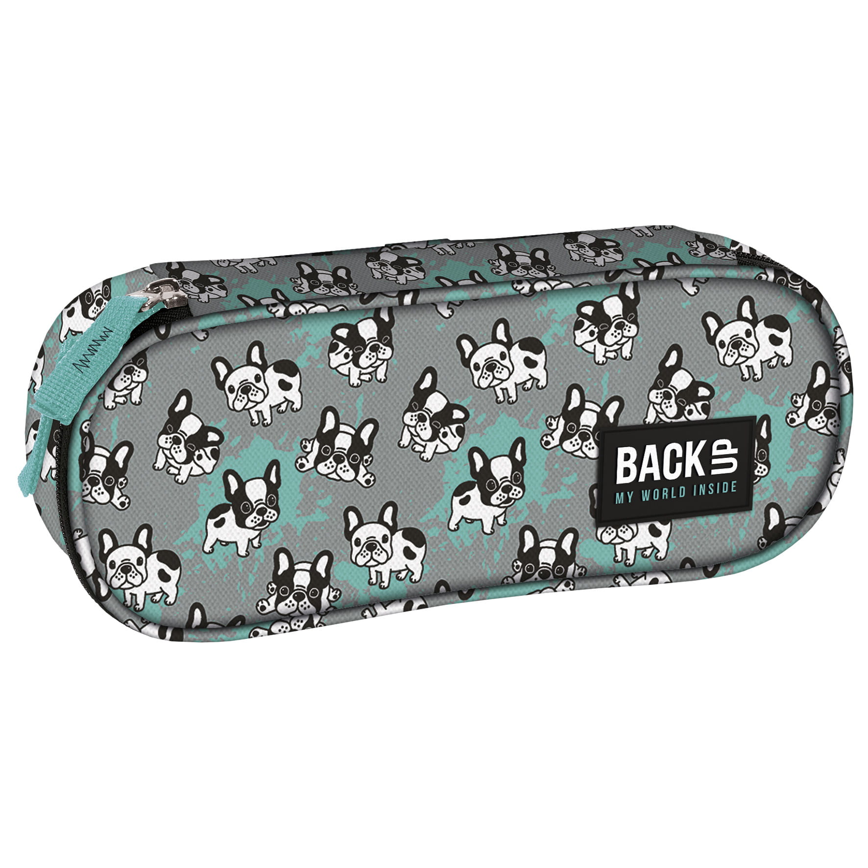 Niezdarne buldożki ponownie wkraczają na szkolne korytarze! Ich niesforne pozy rozczulą największych twardzieli. Zabawni, futrzani towarzysze umilą każdy dzień, bo jak wiadomo pies to najlepszy przyjaciel ucznia. Buldożki w połączeniu z ponadczasową szarością i turkusowym dodatkiem kolorystycznym tworzą uniwersalny piórnik młodzieżowy dla wszystkich wielbicieli wesołych frenchie. Jednokomorowy piórnik BackUP posiada: