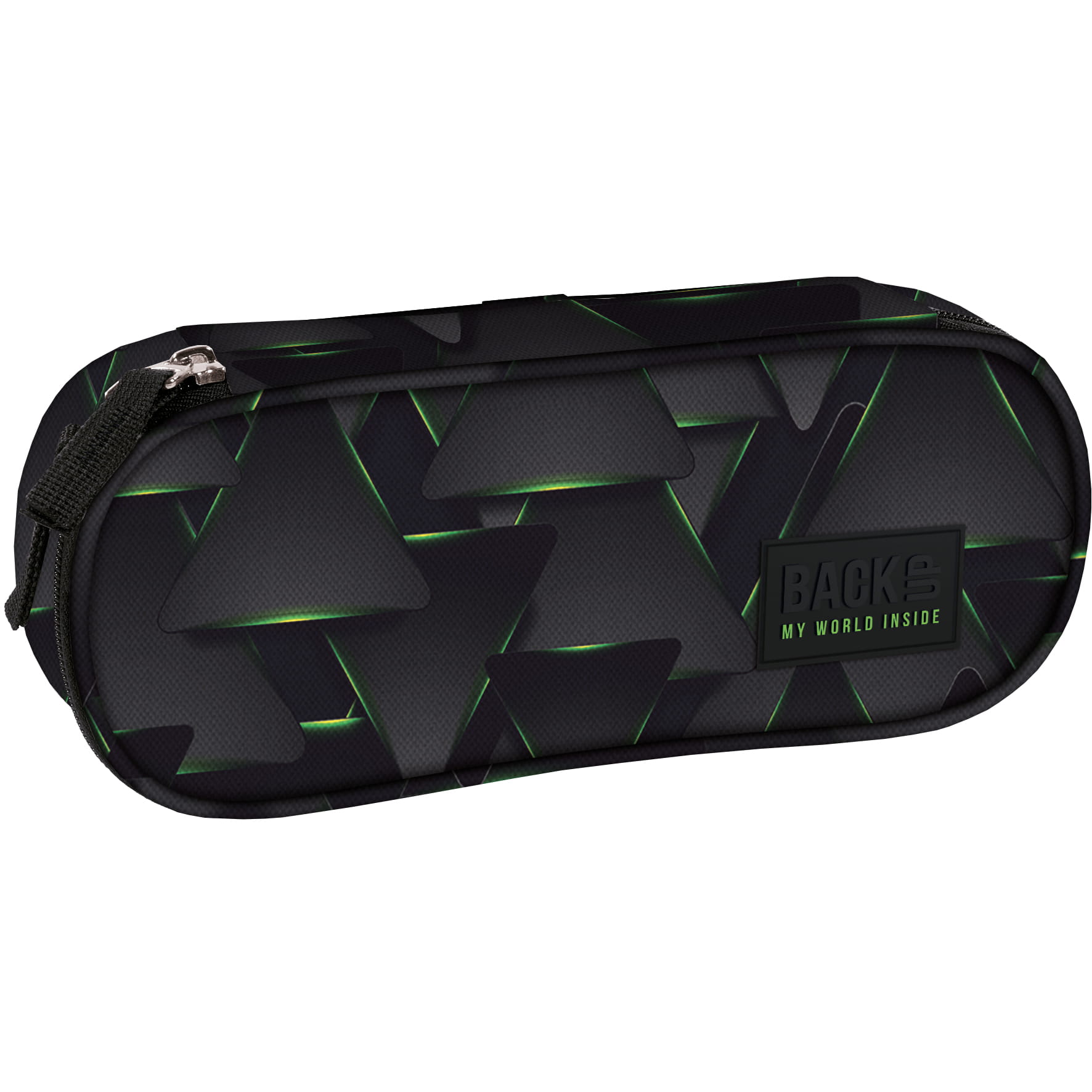 Trójkątne kształty w odcieniach grafitu i czerni, spod których krawędzi wyłania się łuna cybernetycznej, świetlistej zieleni. Ciemne dodaki w postaci suwaków i zamków dodają elegancji. Minimalistyczny a zarazem przyciągający wzrok. To piórnik młodzieżowy dla tych, dla których w modzie liczą się detale.