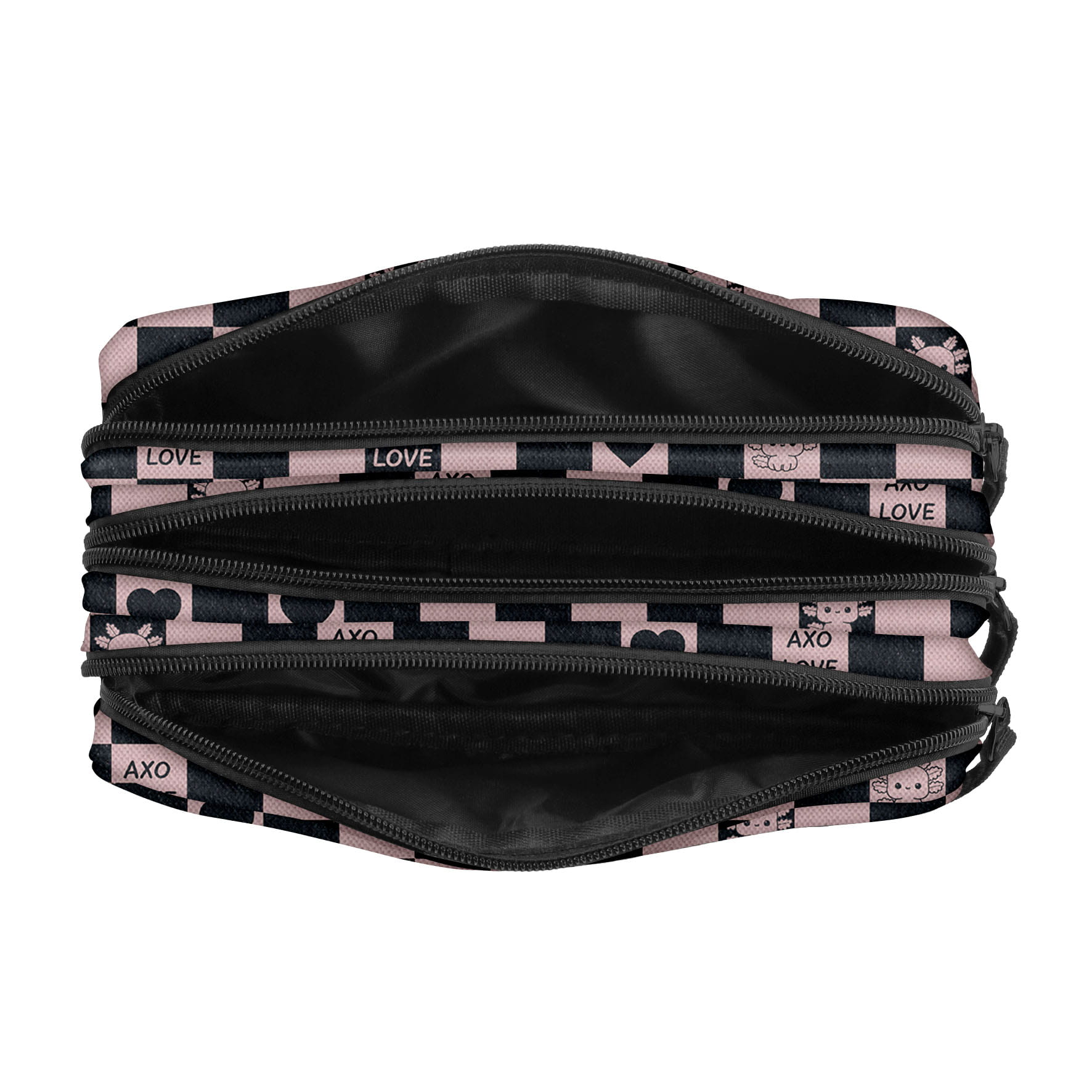 Elegancka szachownica z uroczym akcentem. Połączenie ponadczasowej kratki w jasnym różu z uroczym axolotem tworzy wyjątkowy duet, który podbije serce każdej miłośniczki oryginalnych dodatków. Ten modny piórnik to idealny wybór dla osób, które chcą wyróżnić się z tłumu i śledzą najnowsze trendy.