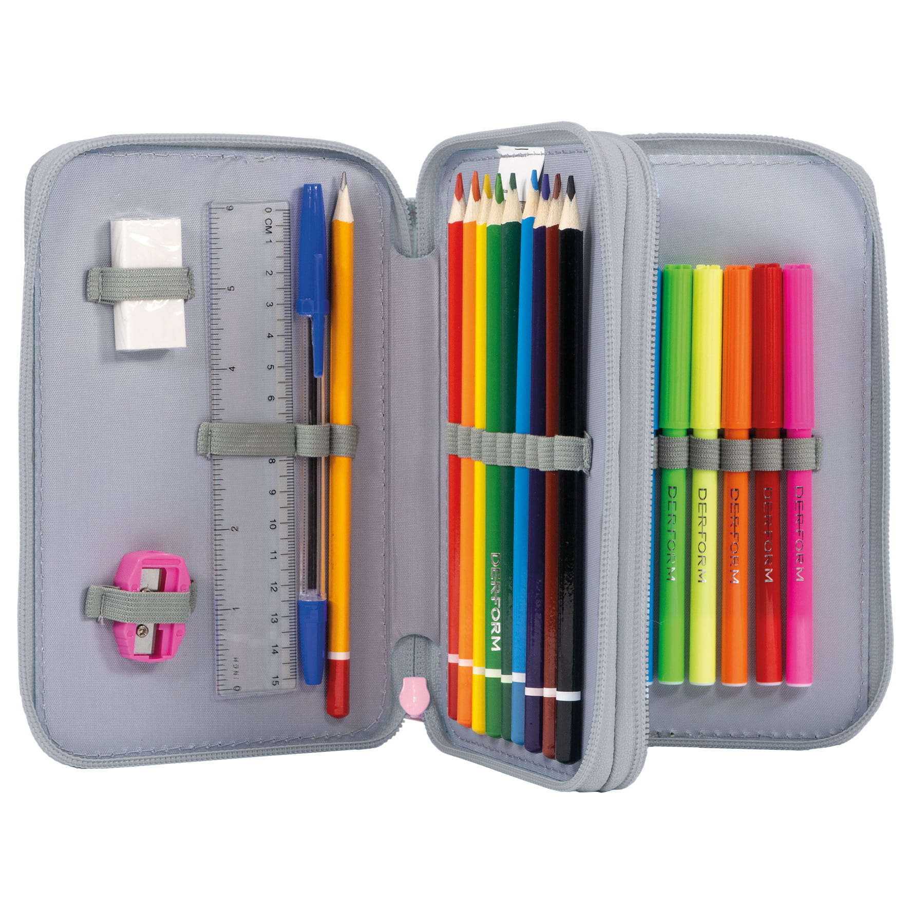 Dwukomorowy piórnik BackUP z wyposażeniem posiada:
