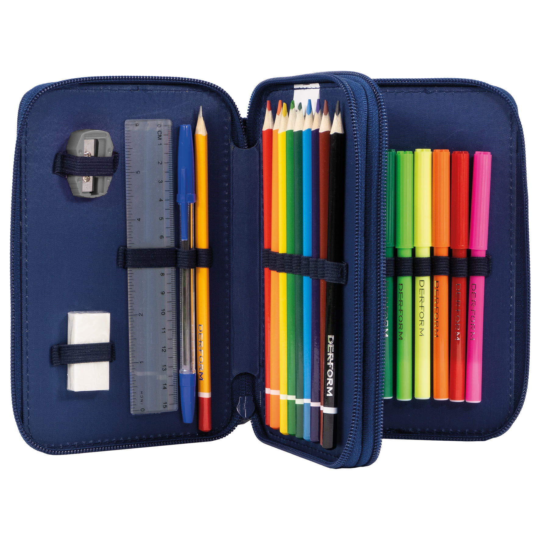 Dwukomorowy piórnik BackUP z wyposażeniem posiada: