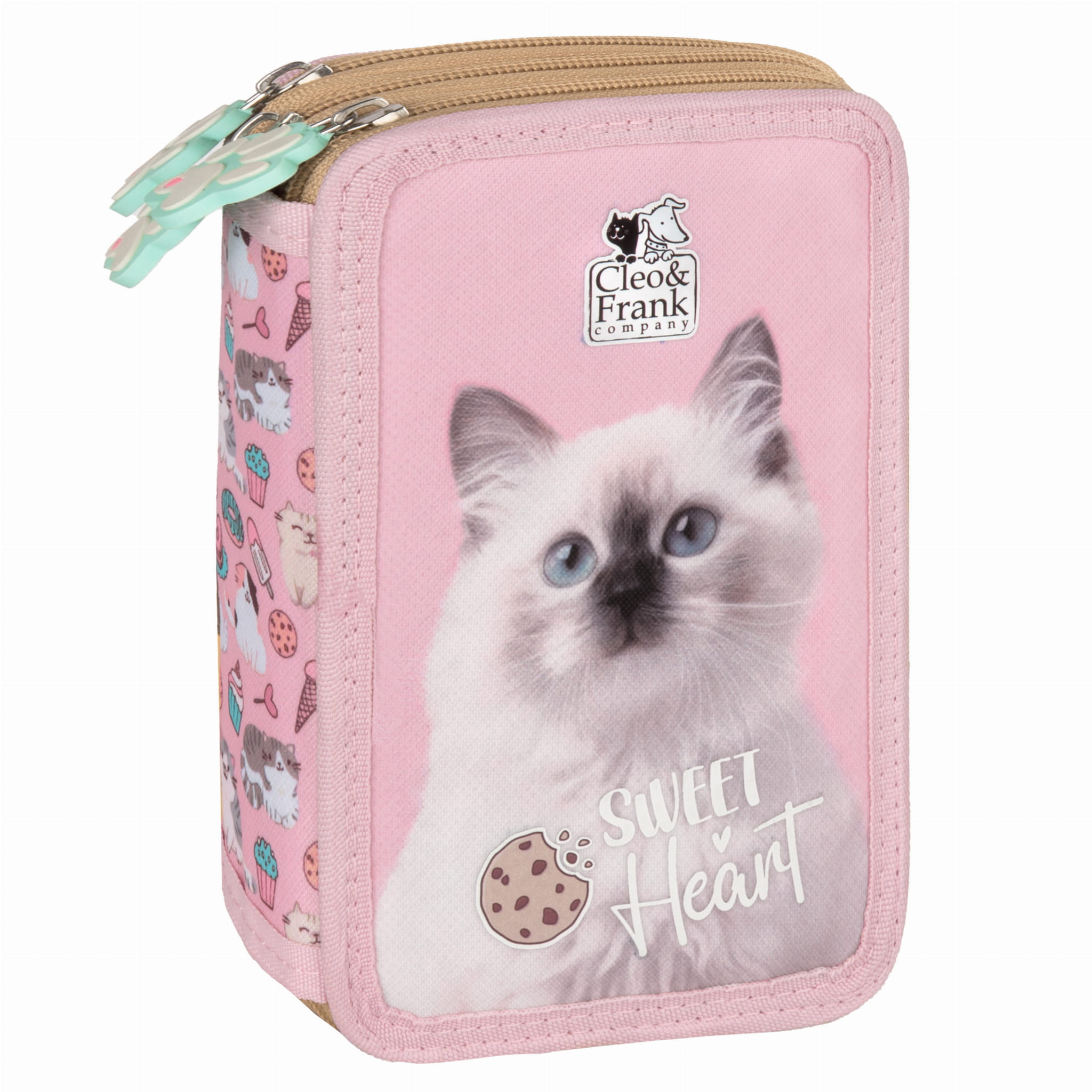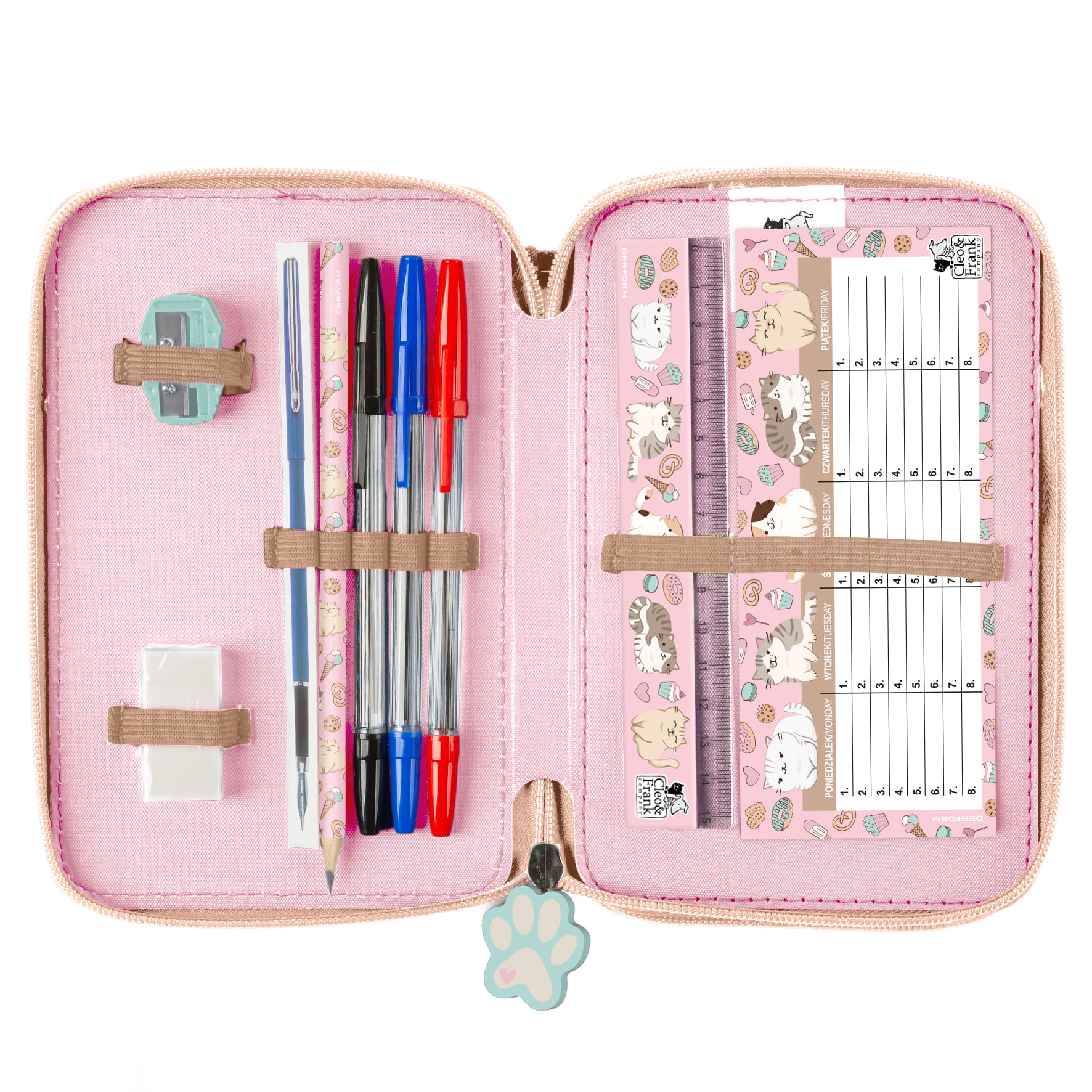 Piórnik z wyposażeniem trójkomorowy Cleo i Frank 45 (Kot)