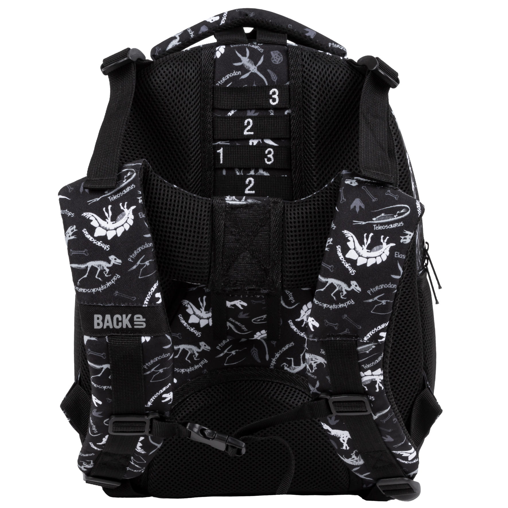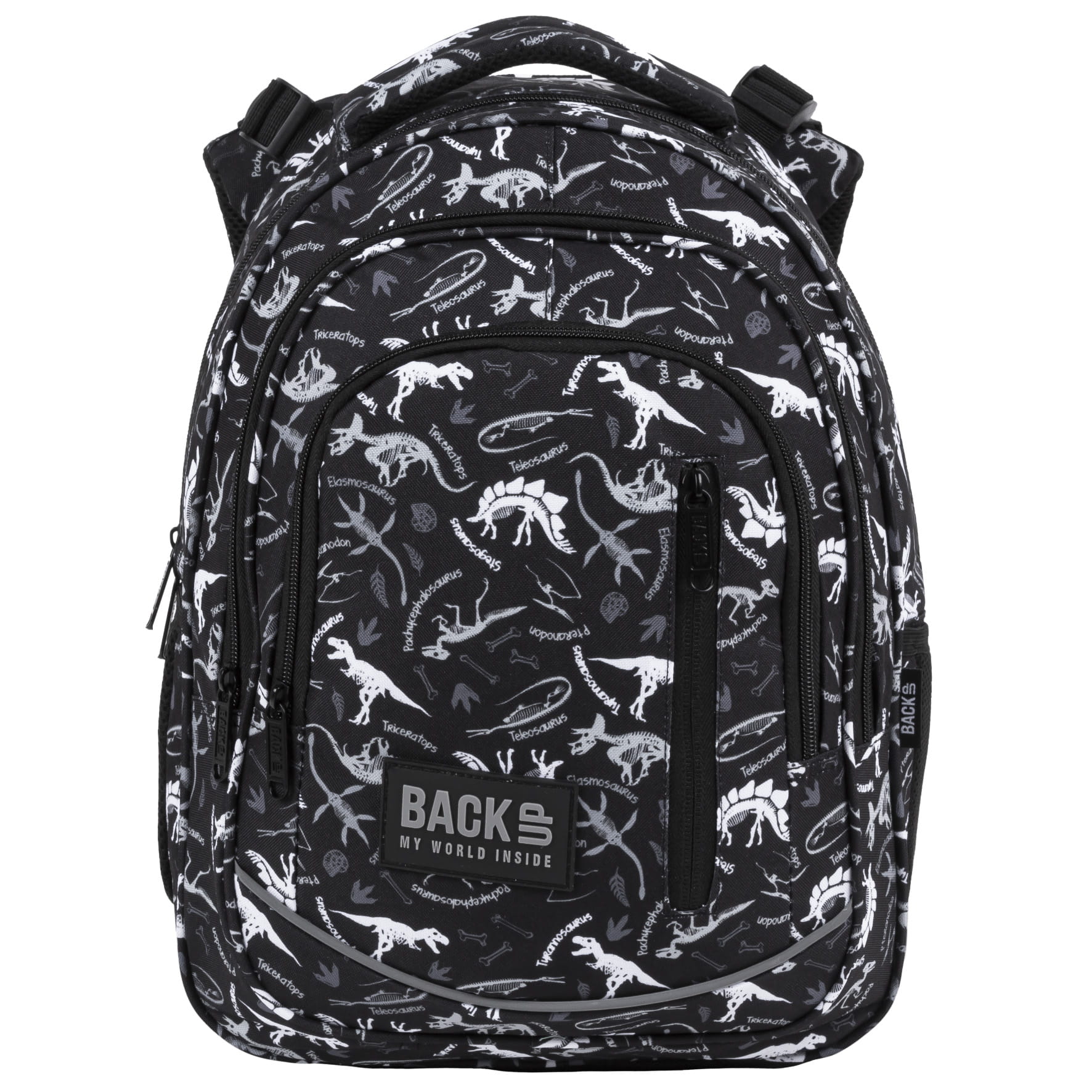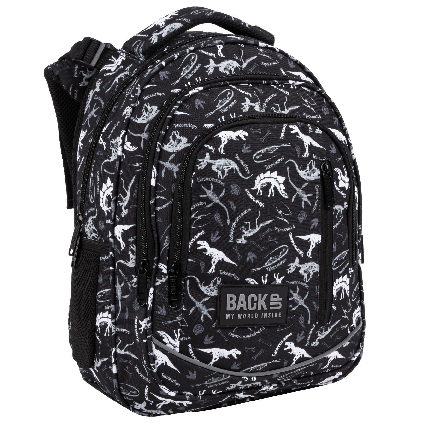 Wykopaliska, szkielety dinozaurów, komary zachowane w bursztynie, pradawne rośliny. Niezwykle fascynujący świat skamielin nie ma przed Tobą tajemnic, mógłbyś zawstydzić niejednego paleontologa. Skomplikowane nazwy jak triceratops, stegosaurus, pachycephalosaurus, pteranodon, elasmosaurus nie brzmią wcale tajemniczo. Szacuneczek! Mamy w takim razie propozycję, przyjrzyj się tym szkieletom. Myślisz, że wszystko się zgadza? Sprawdź nas! Odcienie czerni, szarości i bieli to doskonała propozycja da każdego chłopca zafascynowanego światem wymarłych gadów. Plecak BackUP posiada:
