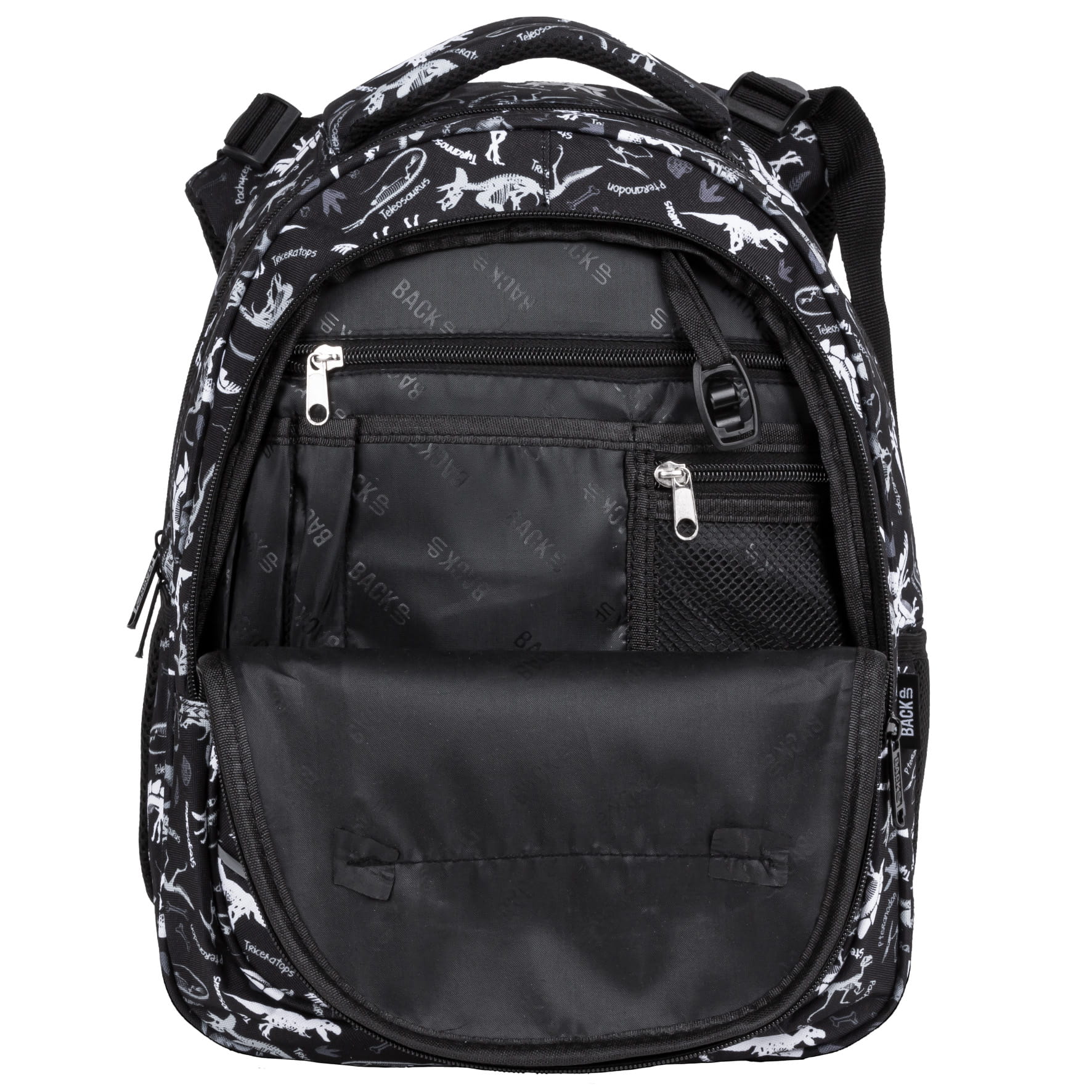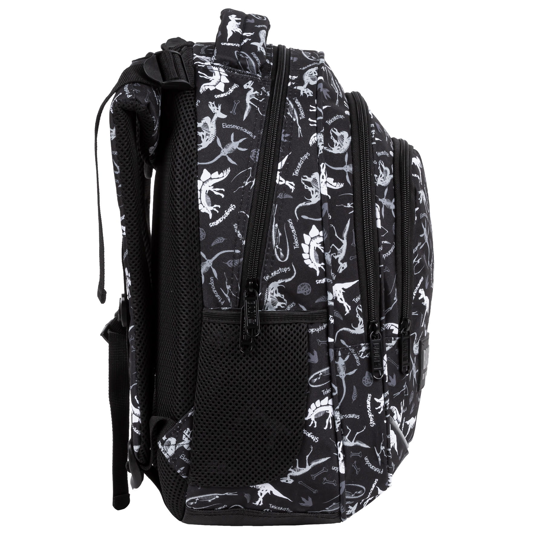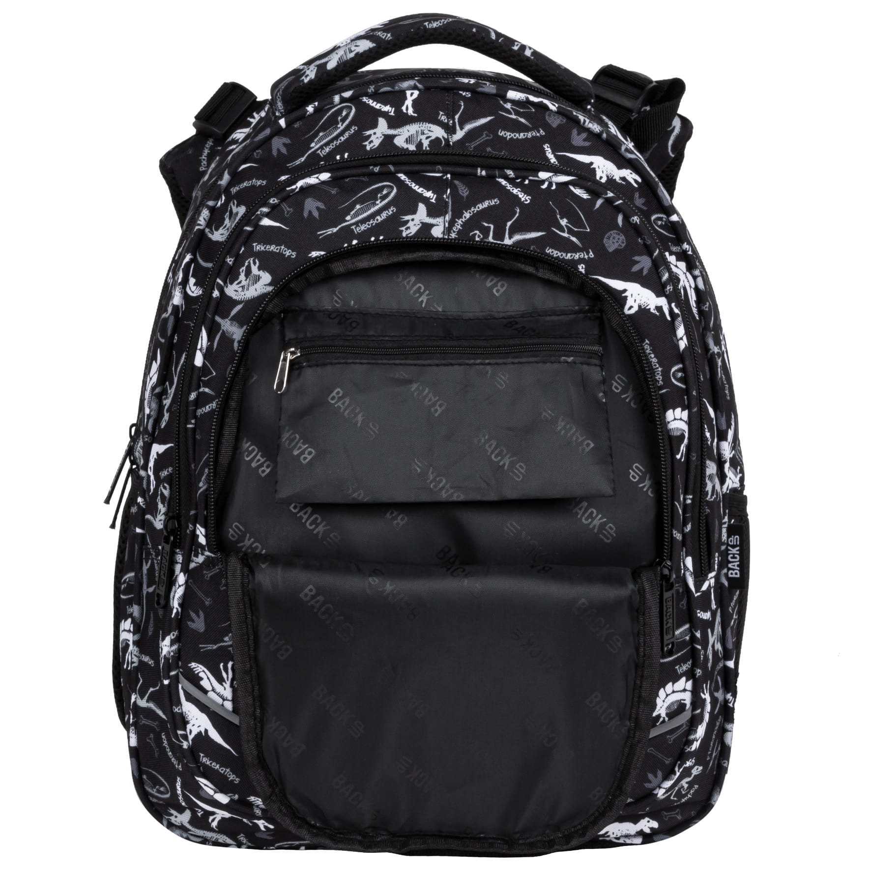 Wykopaliska, szkielety dinozaurów, komary zachowane w bursztynie, pradawne rośliny. Niezwykle fascynujący świat skamielin nie ma przed Tobą tajemnic, mógłbyś zawstydzić niejednego paleontologa. Skomplikowane nazwy jak triceratops, stegosaurus, pachycephalosaurus, pteranodon, elasmosaurus nie brzmią wcale tajemniczo. Szacuneczek! Mamy w takim razie propozycję, przyjrzyj się tym szkieletom. Myślisz, że wszystko się zgadza? Sprawdź nas! Odcienie czerni, szarości i bieli to doskonała propozycja da każdego chłopca zafascynowanego światem wymarłych gadów. Plecak BackUP posiada: