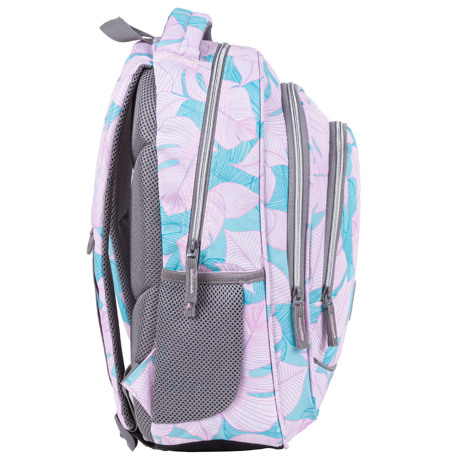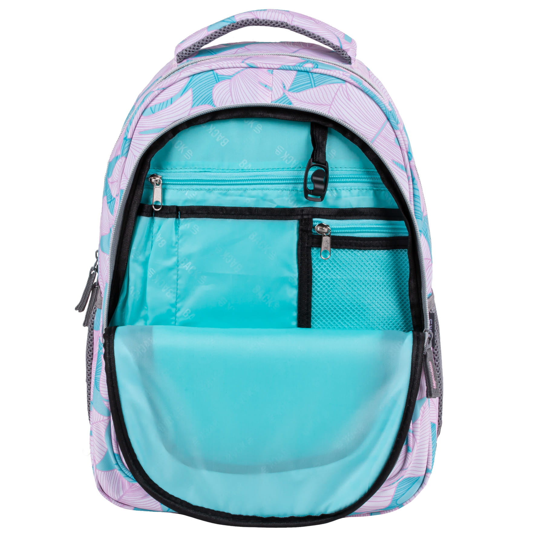 Olbrzymie liście monstery to motyw, którego nie może zabraknąć w najmodniejszym trendzie ostatnich lat, a mianowicie w urban jungle. Pojawia się on w elementach wykończenia wnętrz, dekoracjach, ceramice, biżuterii, jak i również na tkaninach. Tym razem w niecodziennym wydaniu i niezwykle modnej pastelowej tonacji. Delikatny róż liści idealnie komponuje się z turkusowym tłem. Monstera w pastelowych kolorach..., czy może być piękniej? Plecak BackUP posiada: