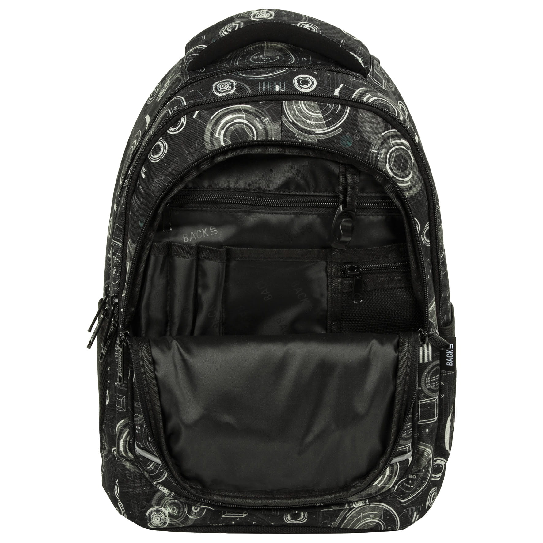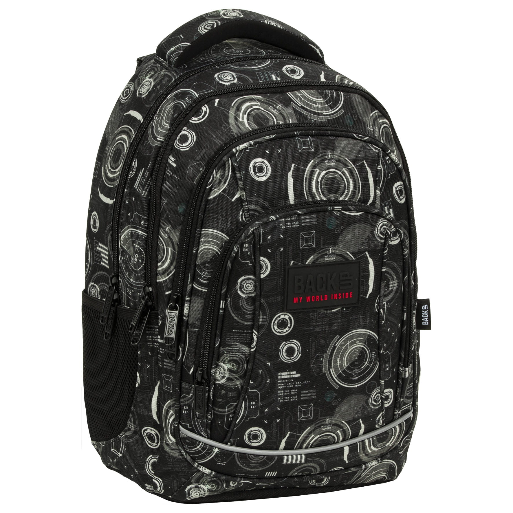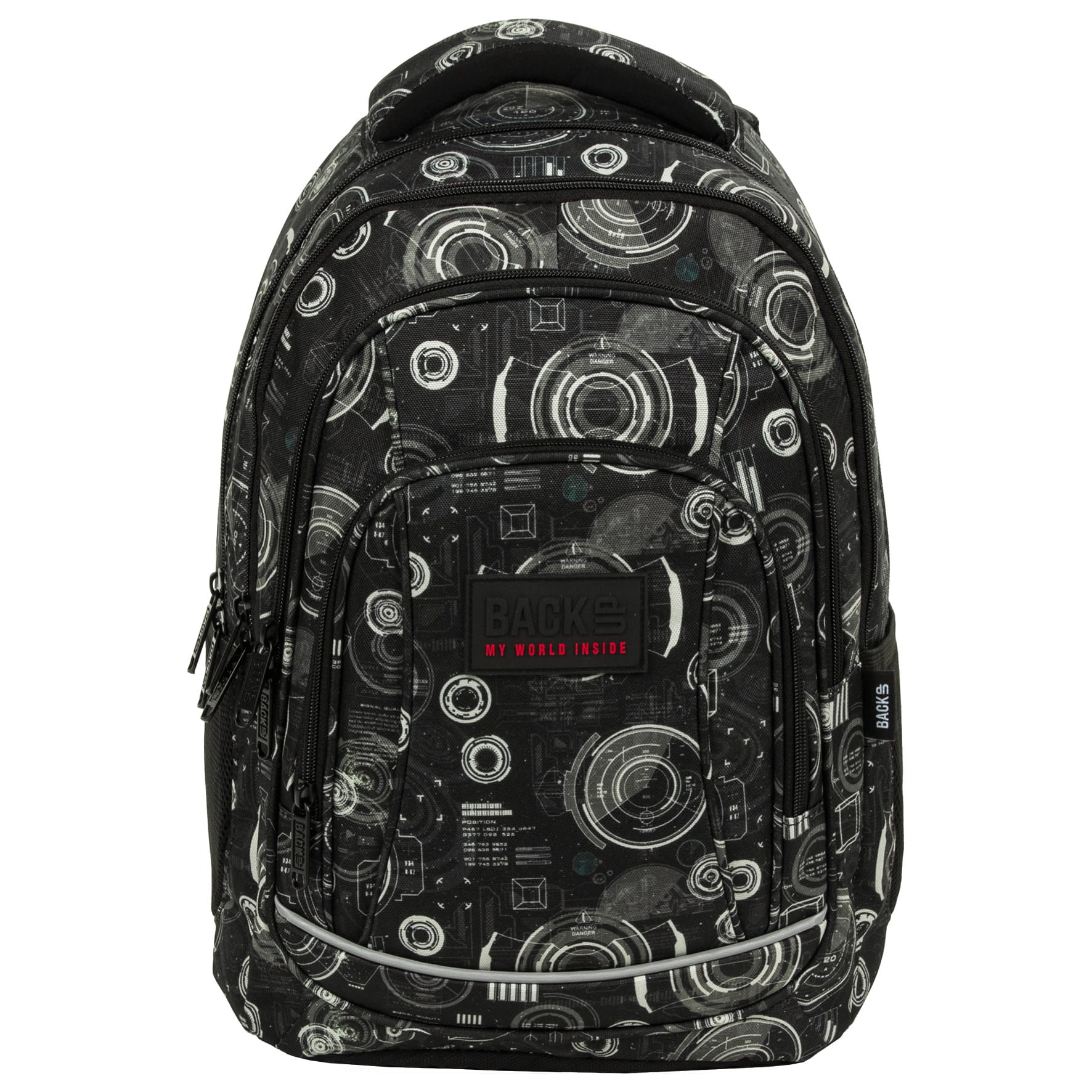 Jakie tajemnice skrywa niebo? Czy jest pełne niezbadanych obiektów? Jakie zjawiska kryją się pomiędzy chmurami? Plecak szkolny z kolekcji Radar stworzony został dla miłośników nauki i poszukiwaczy odpowiedzi na nurtujące pytania. Połączenie czerni z kolorem khaki wektorów radarów tworzy oryginalny, a zarazem tajemniczy motyw. Techniczna grafika zachęca do wyruszenia w podróż, której głównym celem jest wiedza! Plecak BackUP posiada: