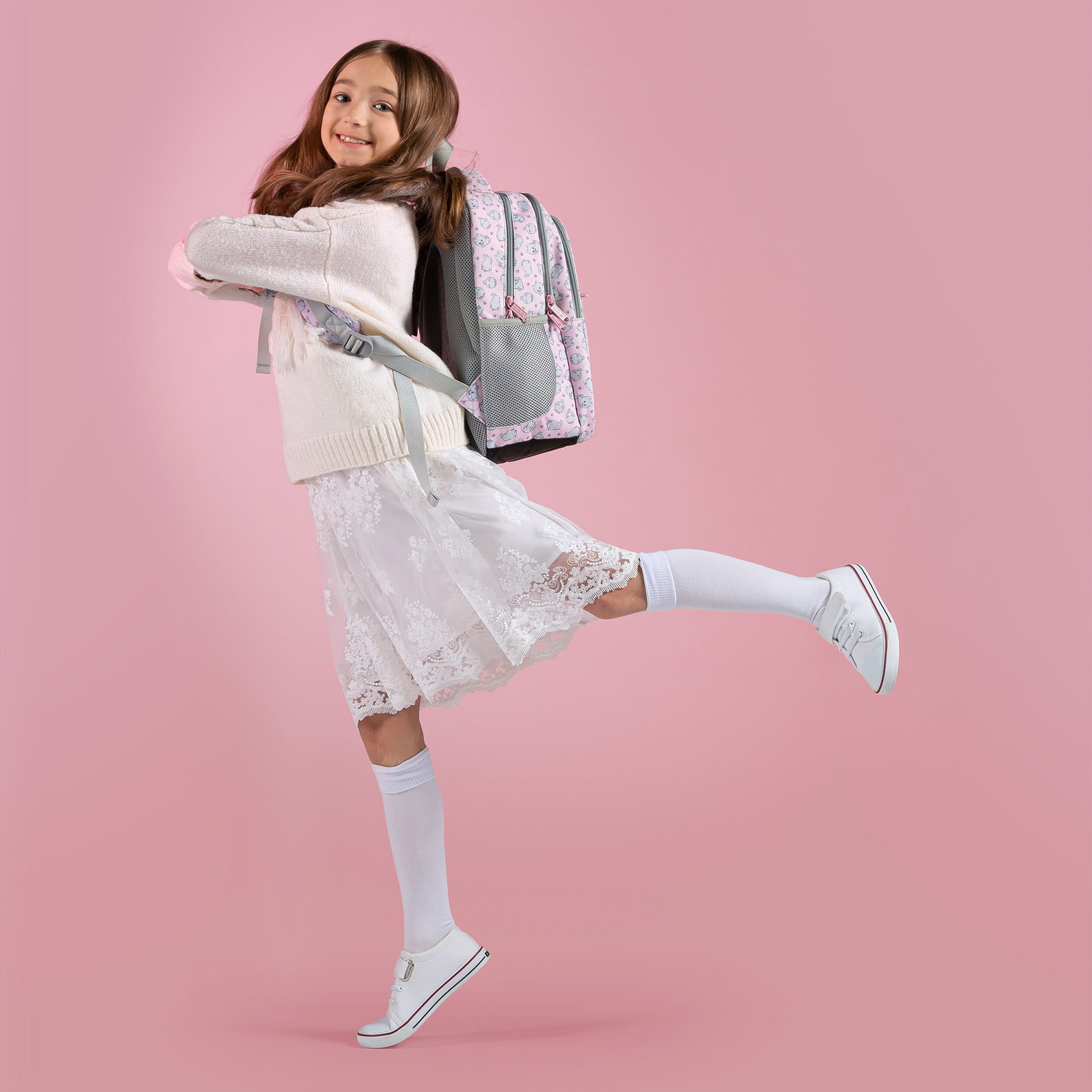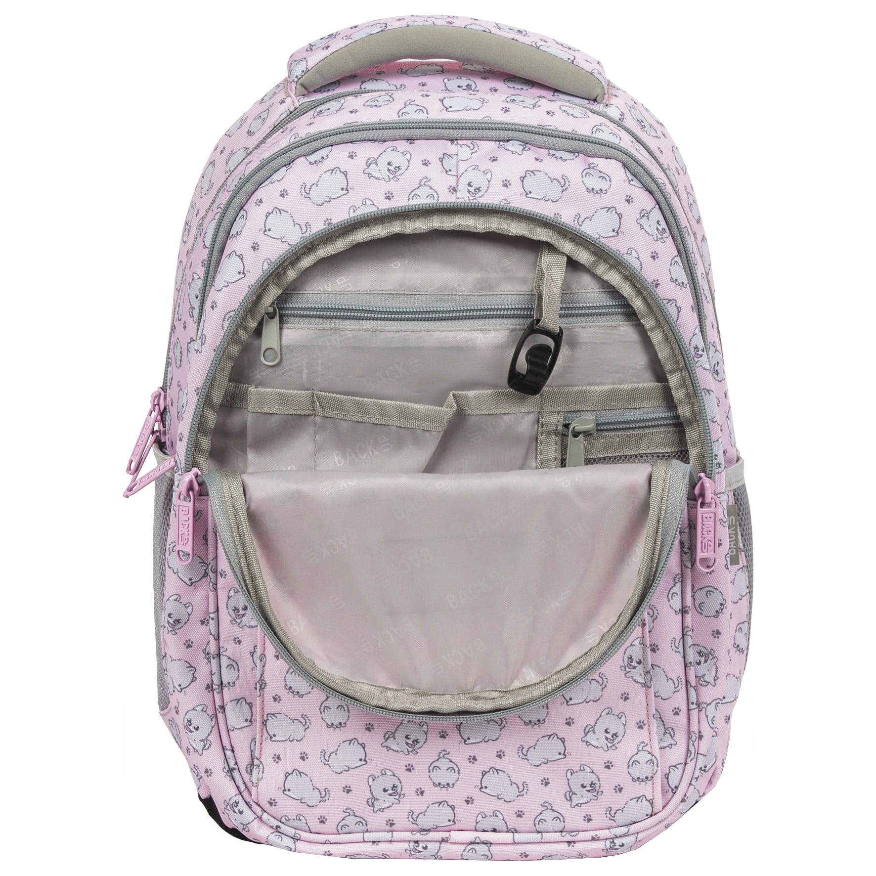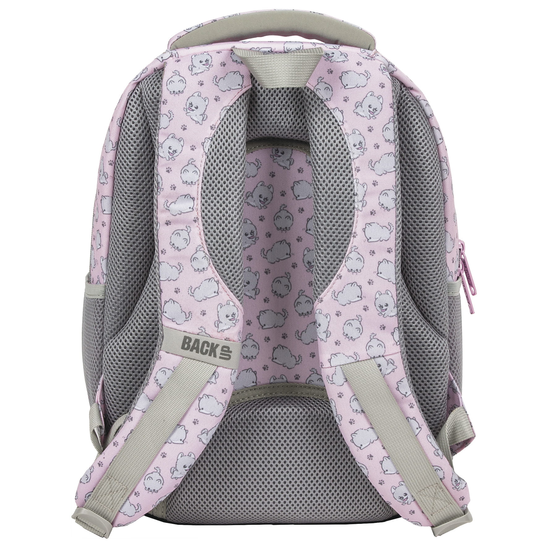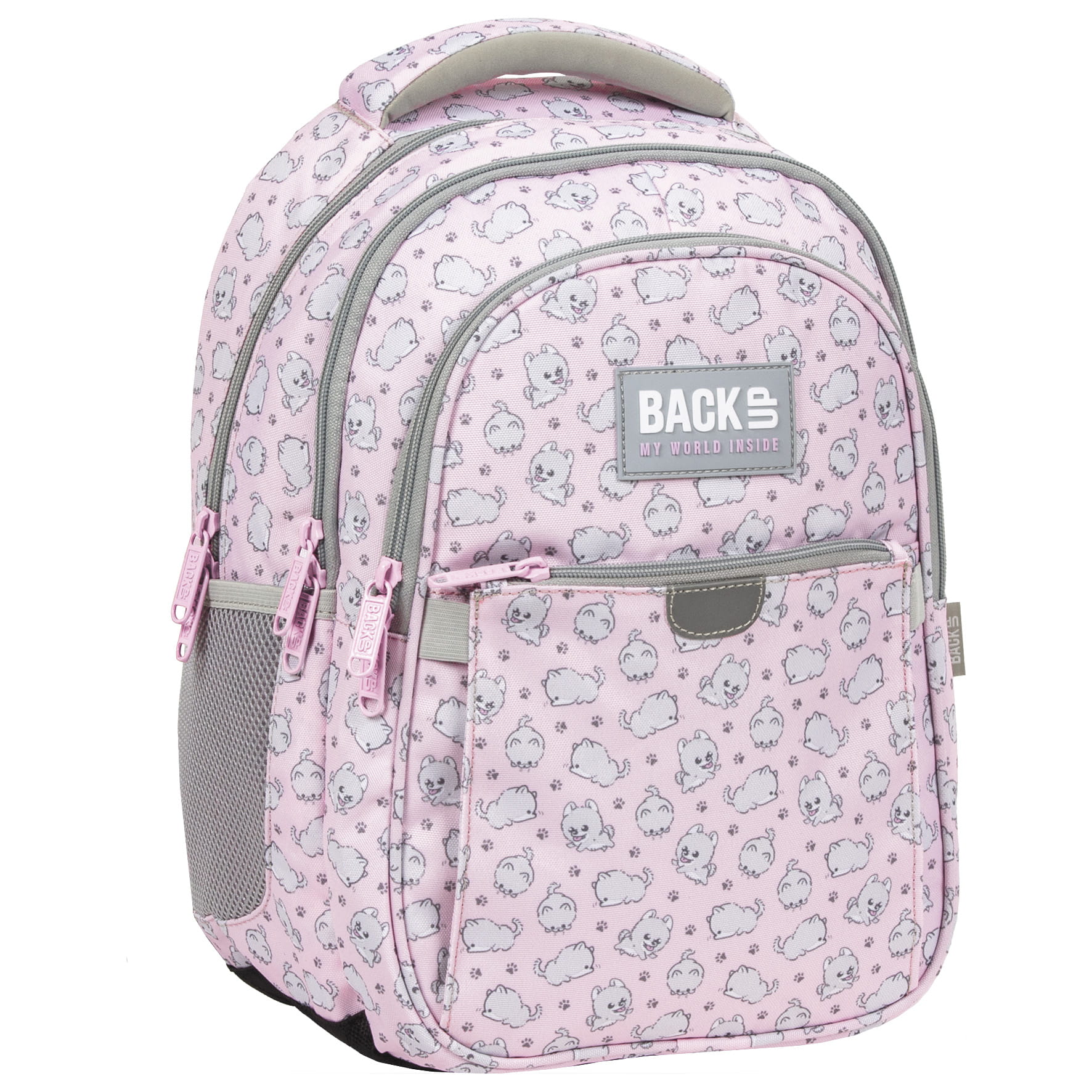 Pastelowy róż w połączeniu z szarymi detalami i urokliwymi, niezdarnymi pieskami - czy można wymarzyć sobie lepszy plecak dla dziewczynki? Niesforne, białe psiaki prezentują przeróżne sztuczki, które wywołają uśmiech na dziecięcej twarzy. Taki futrzany przyjaciel to skarb, zwłaszcza w pierwsze dni szkoły! Rozmiar plecaka BackUP z kolekcji Boo oraz jego wyjątkowy wzór zostały dopasowane z myślą o dzieciach, które dopiero rozpoczynają swoją szkolną przygodę. Plecak BackUP posiada: