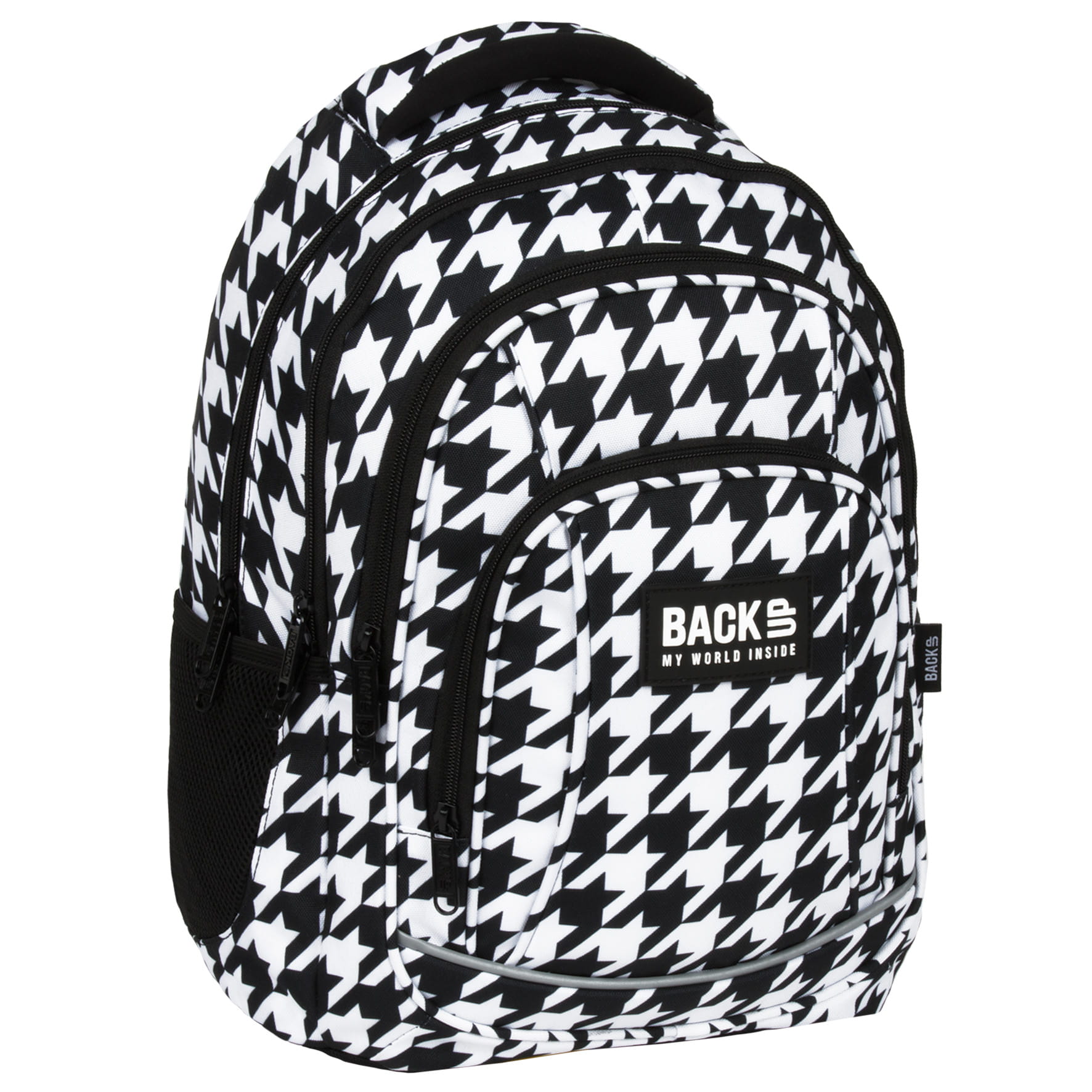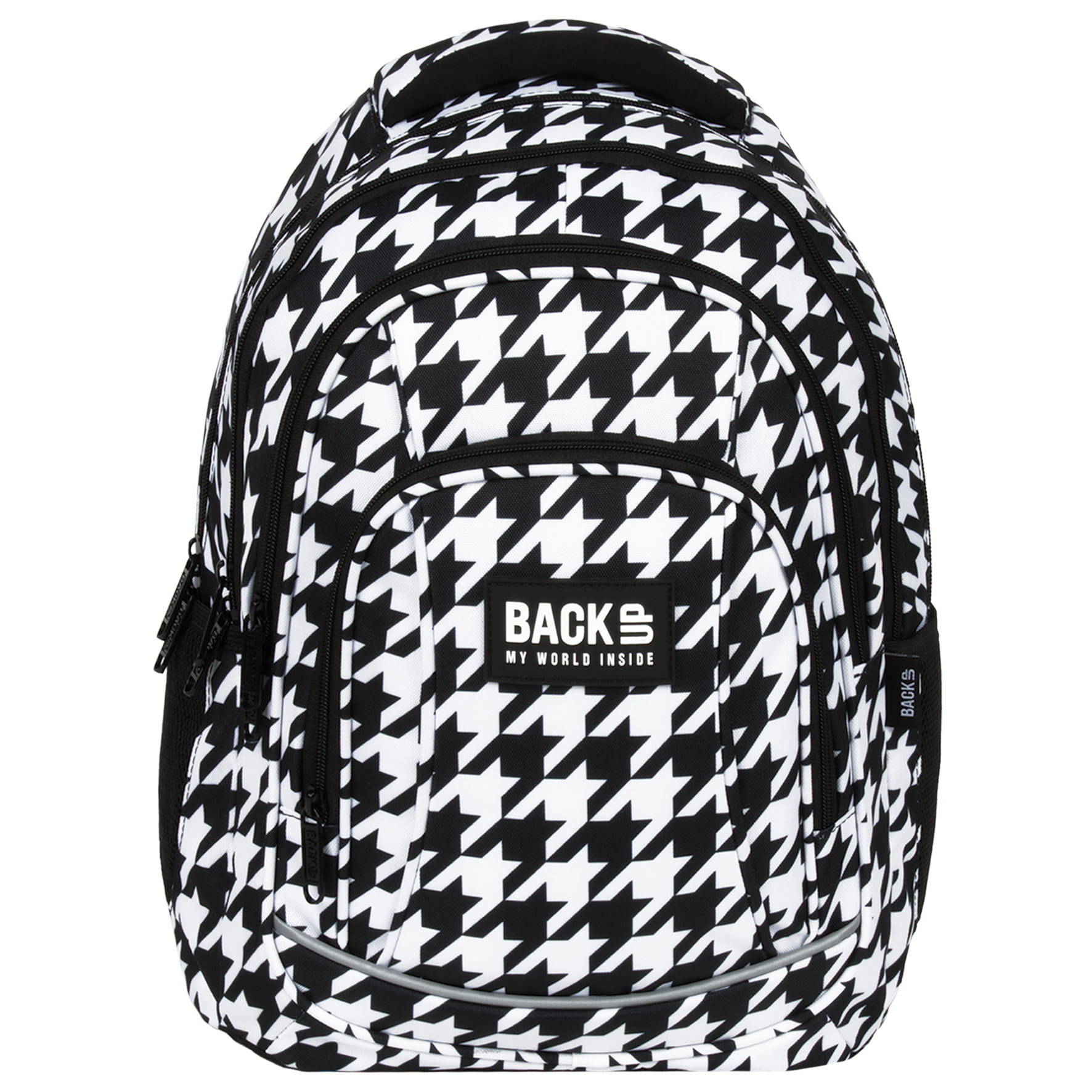 Czarno-biała pepitka to elegancki, modny i ponadczasowy wzór. Od lat gości w domach mody największych projektantów. W zestawieniu z czarnymi zamkami i suwakami stanie się najmodniejszym dodatkiem tego sezonu. Klasyczny i elegancki - to plecak dla dziewczynki, której moda to drugie imię.