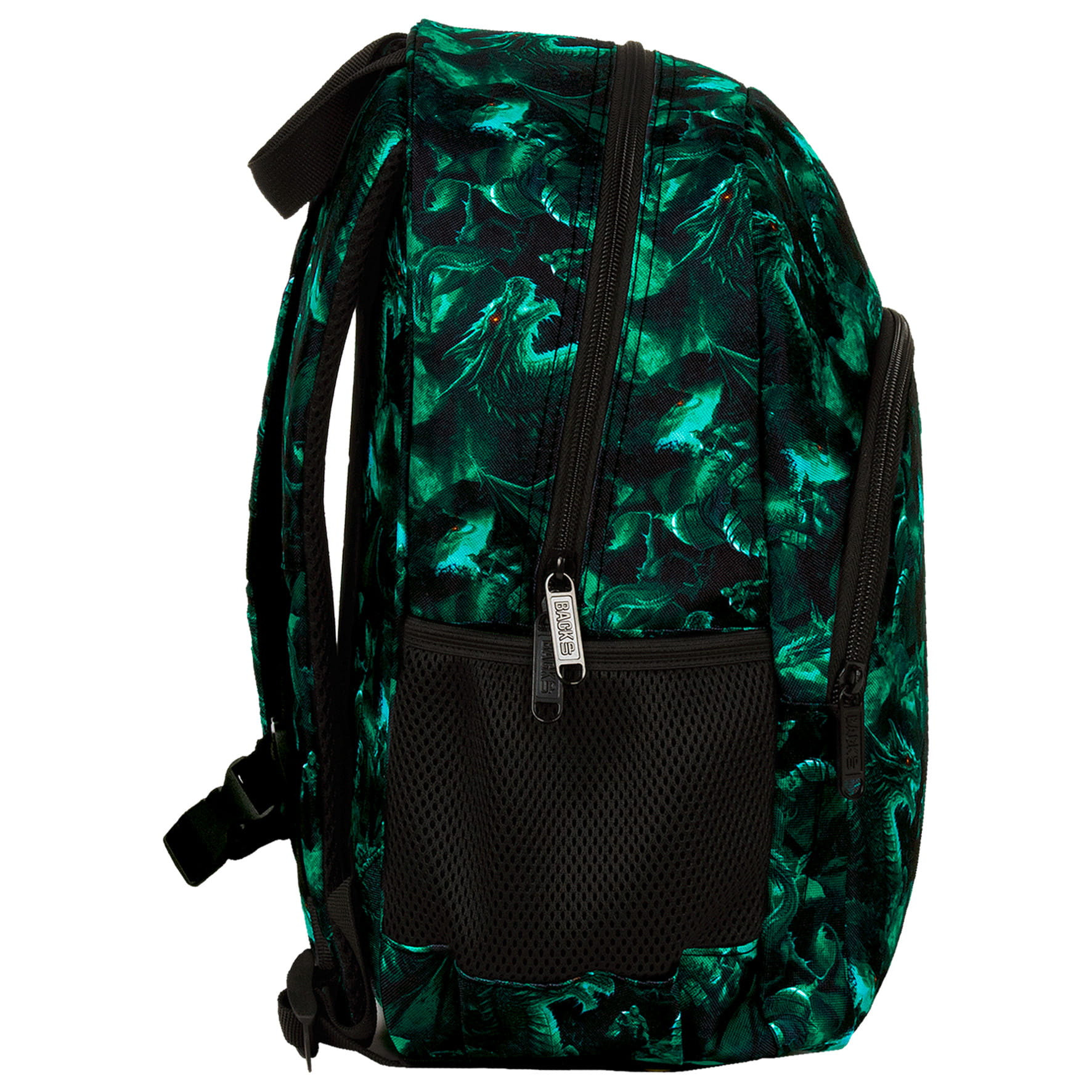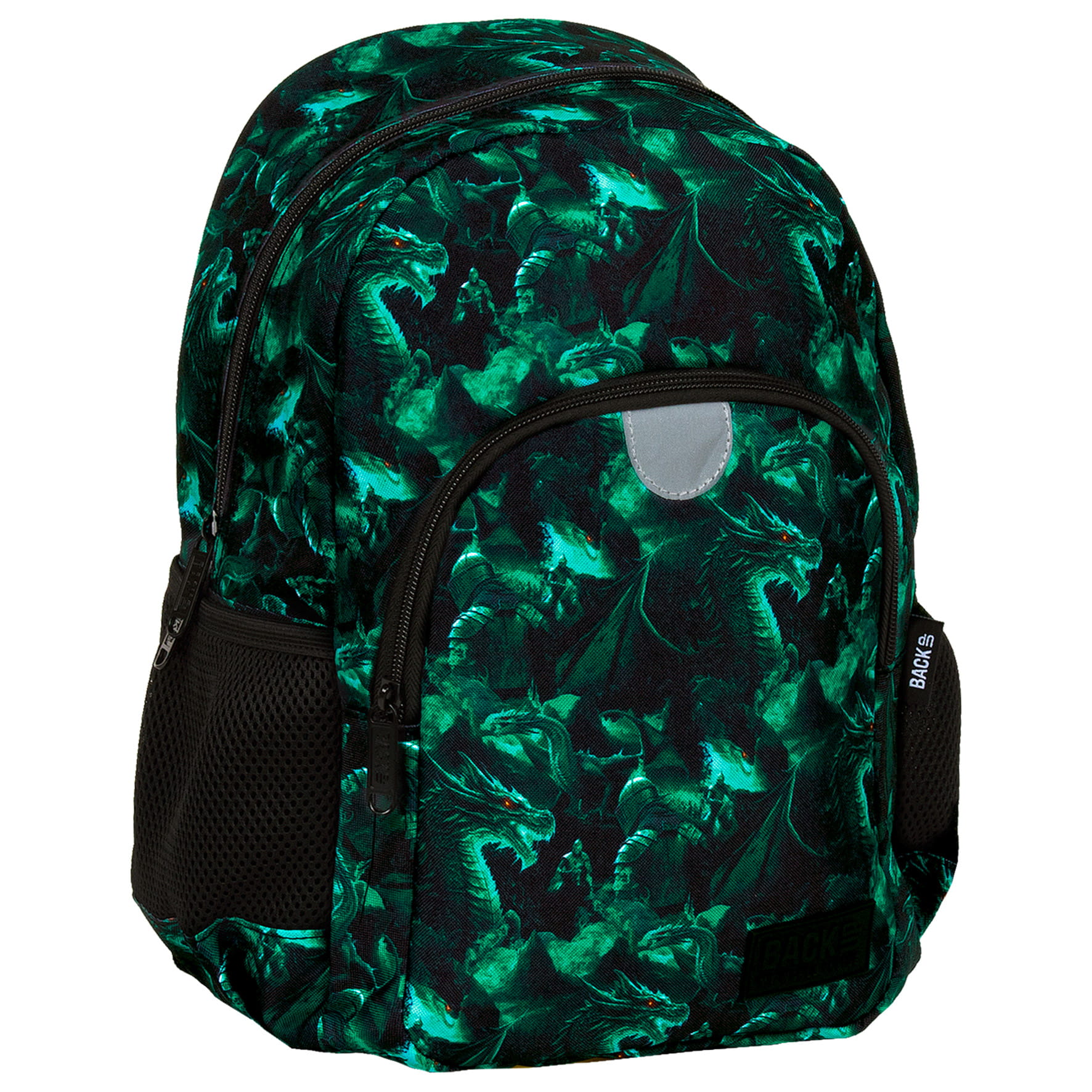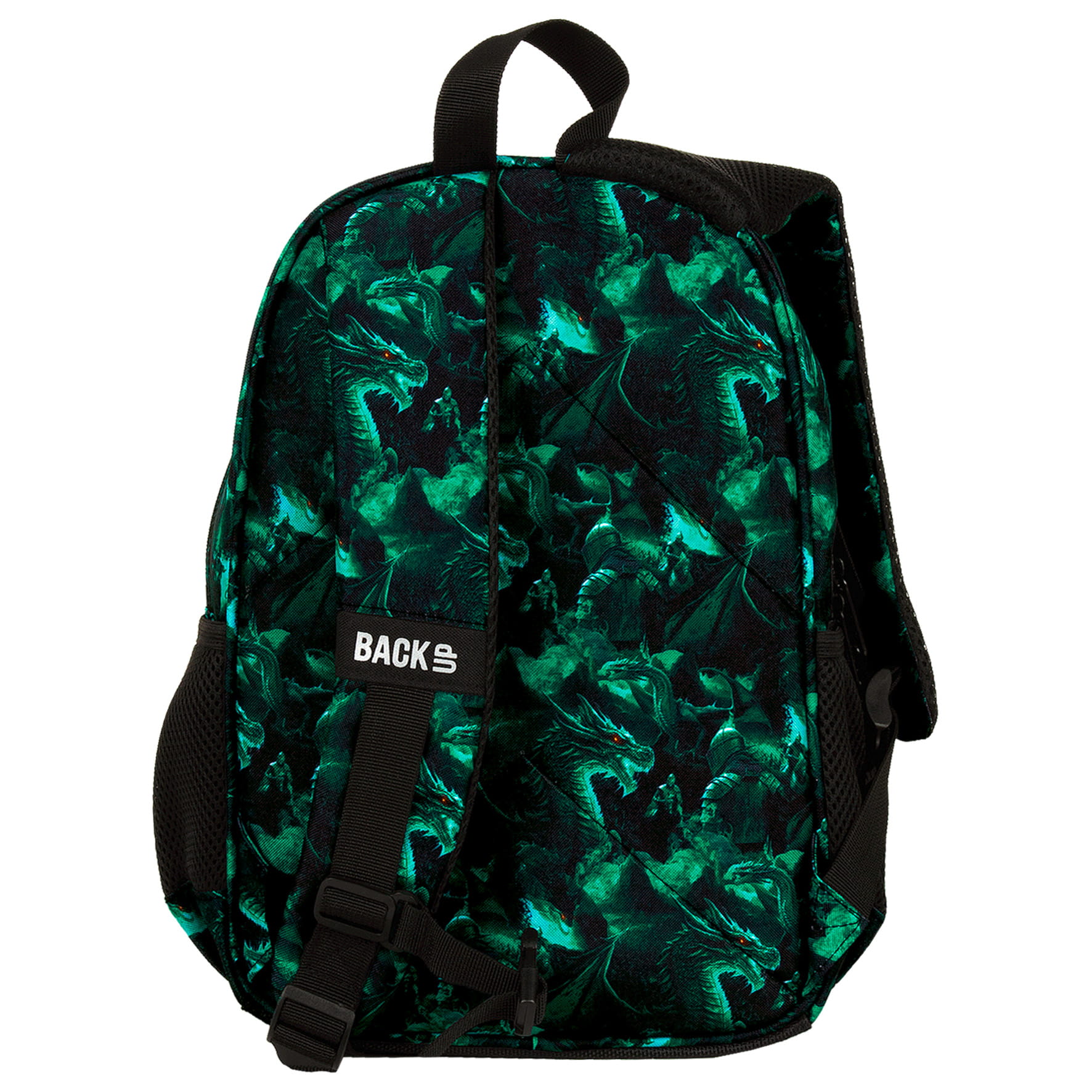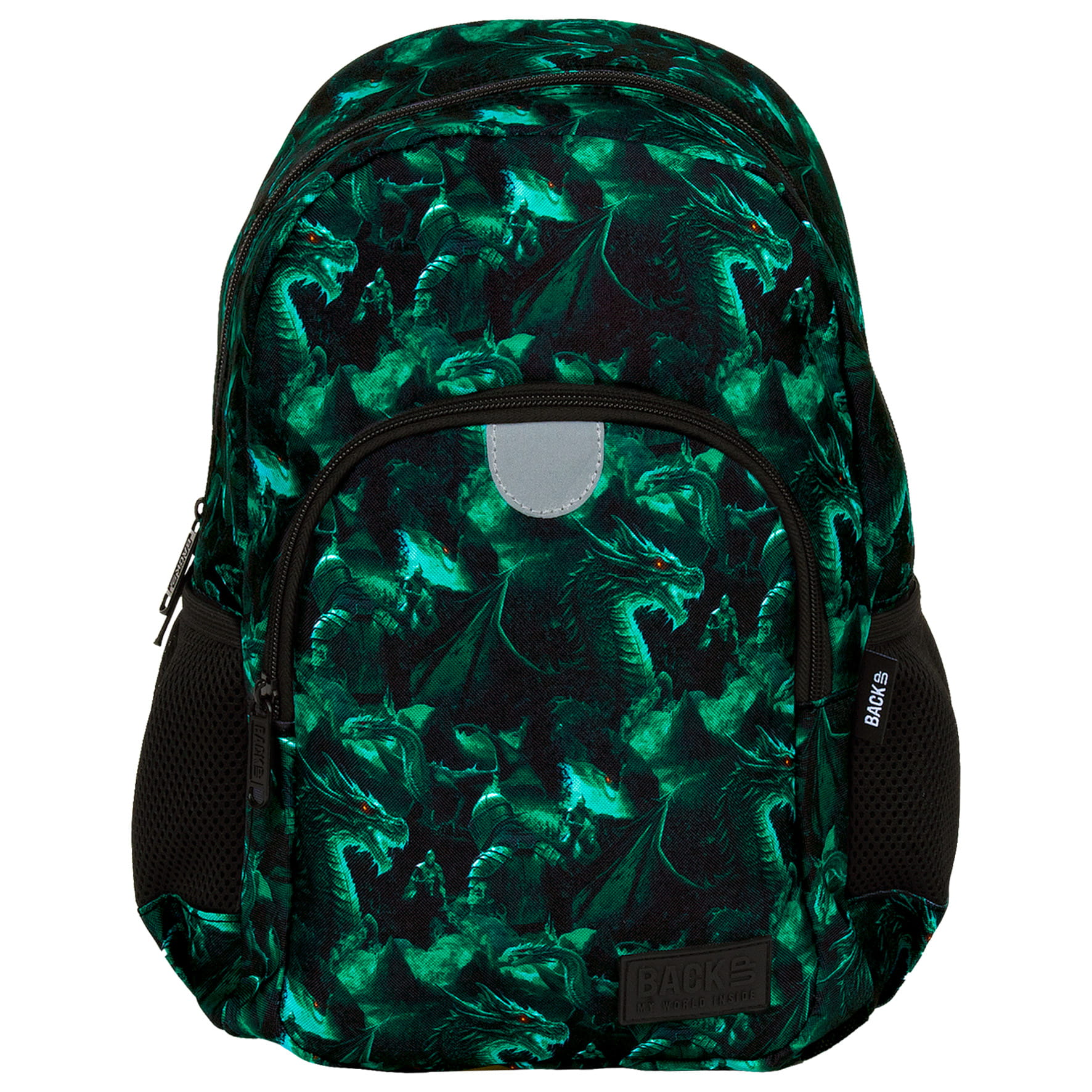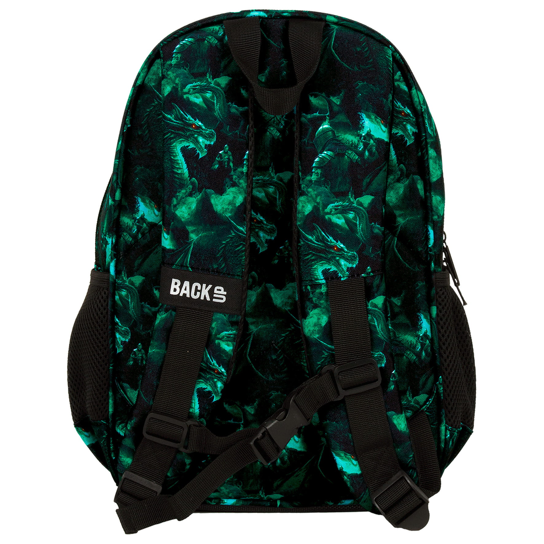 Drapieżne i potężne smoki zdobia czarny materiał plecaka, a ich błyszczące, czerwone oczy śledzą każdy ruch wroga. Ich szmaragdowy kolor dodaje im majestatycznego wyglądu. Czerń suwaków i zamków dodaje tajemniczego charakteru. Walka pomiędzy tymi mistycznymi zwierzętami a walecznymi rycerzami właśnie się rozpoczęła. To plecak szkolny, który przenosi do fantastycznego świata wyobraźni. Dzięki rozmiarom dopasowanym do drobnej postury dziecka, to idealny pierwszy plecak do przedszkola i zerówki. Sprawdzi się świetnie jako plecak turystyczny.