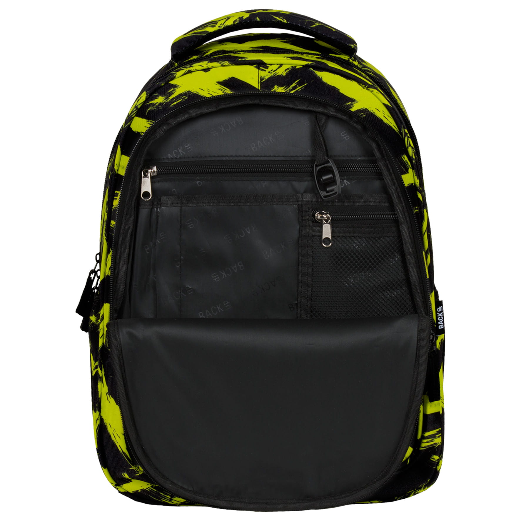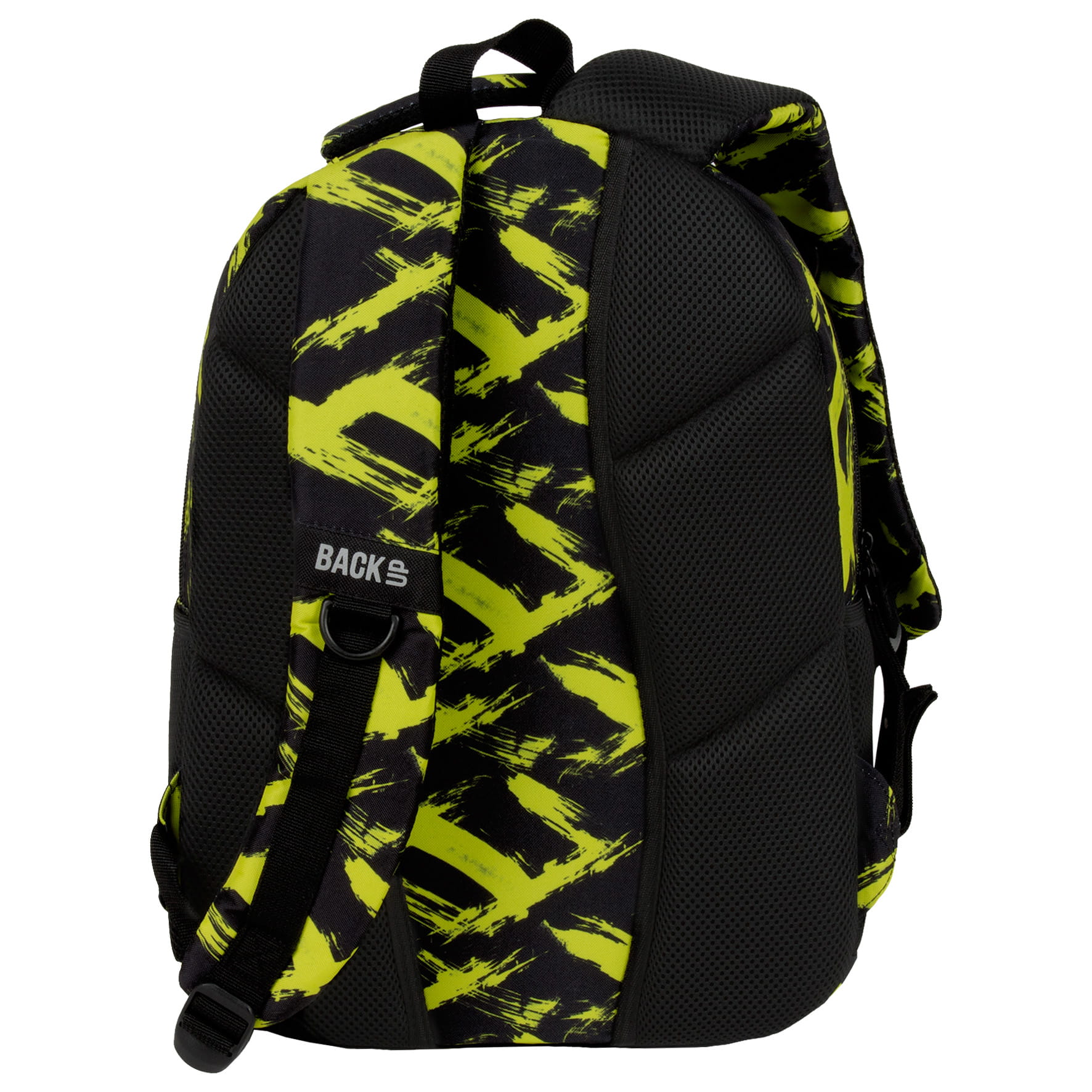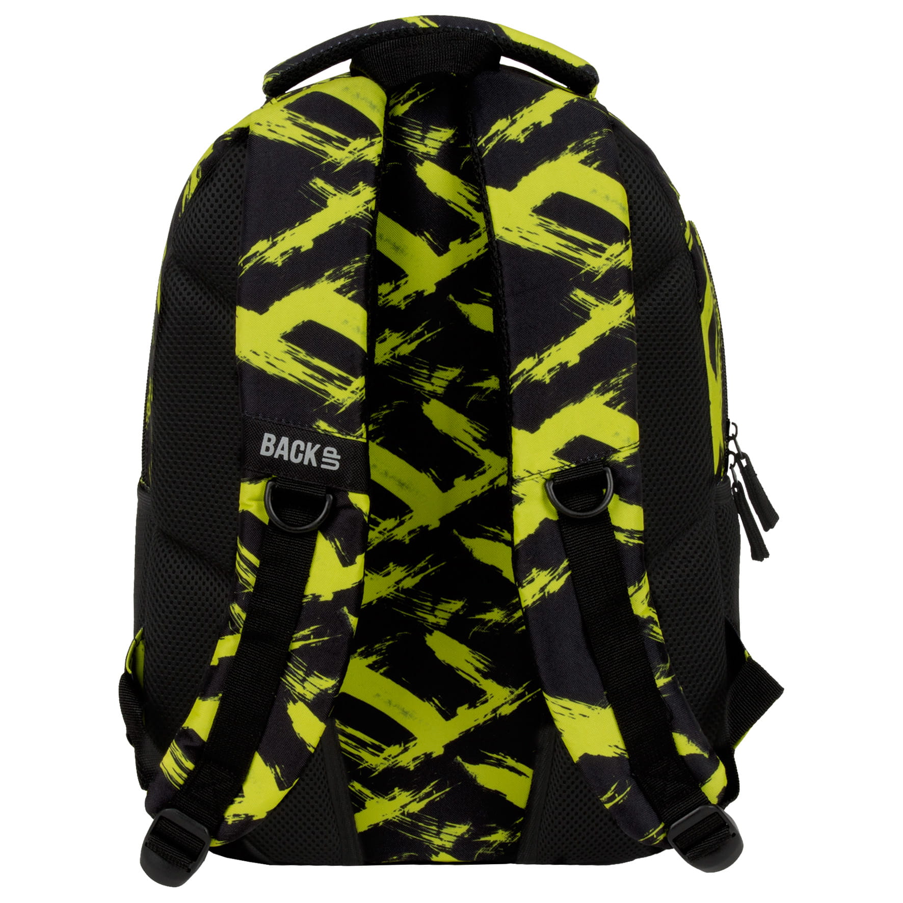 Intensywne neonowe barwy zdobią czarny materiał plecaka, na myśl przywodząc energiczne pociągnięcia pędzla. Artystyczny i asymetryczny rozkład neonowo-zielonych pasm nadaje chłopięcego charakteru. Dynamiczny i wyrazisty plecak młodzieżowy wyróżni się na szkolnym korytarzu i dopełni każdą basicową stylizację odrobiną mocnych barw.
