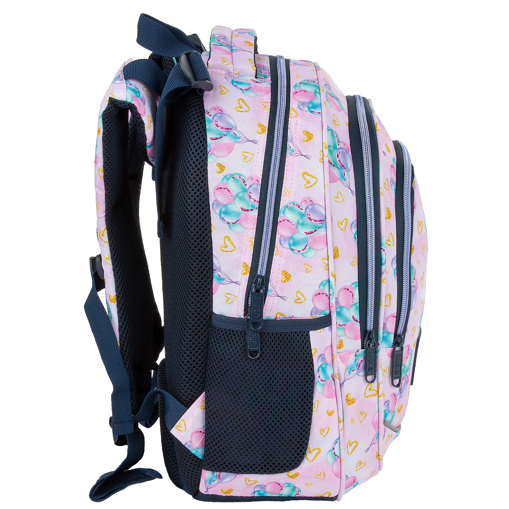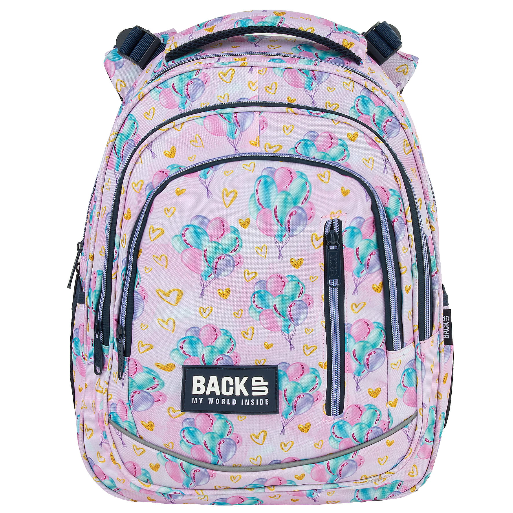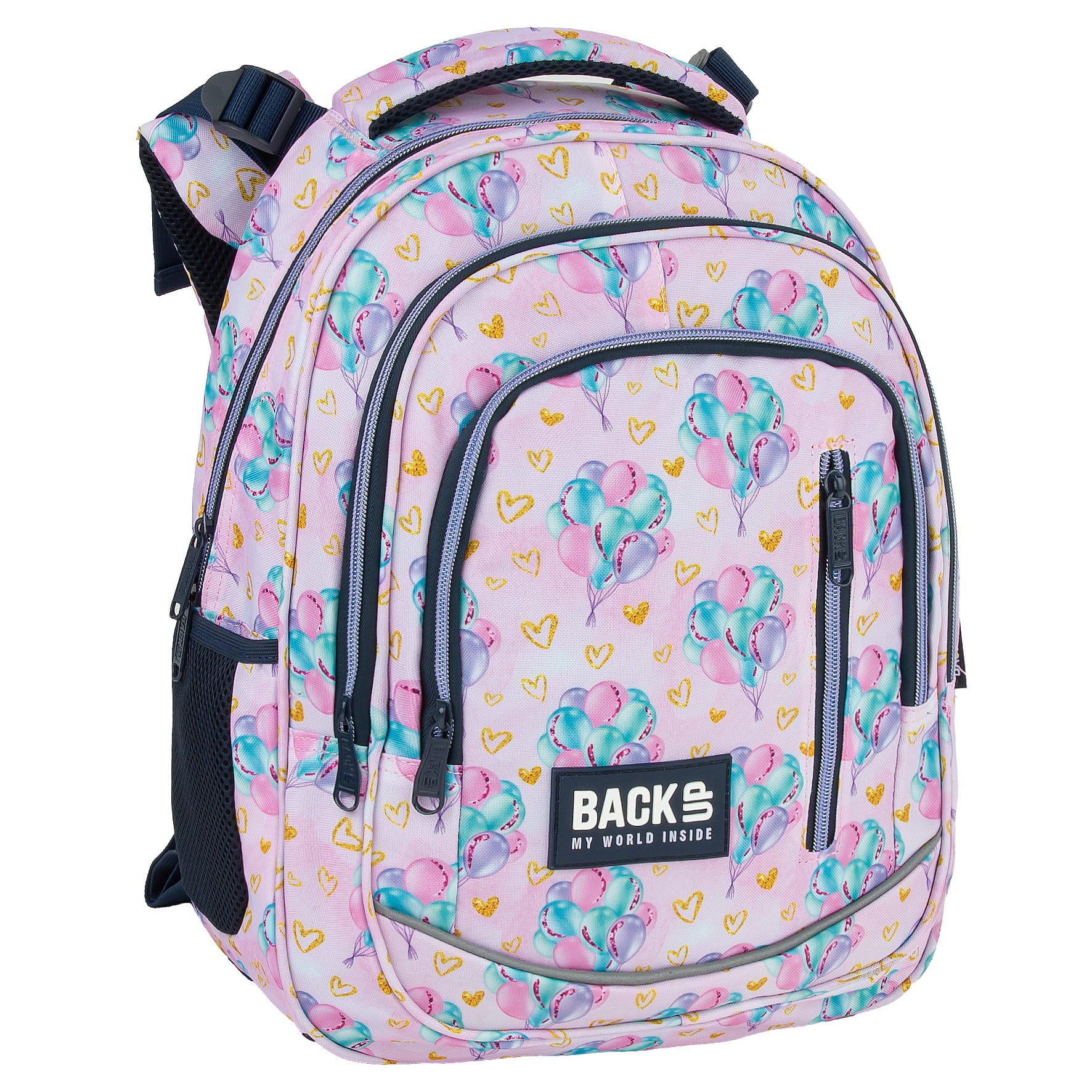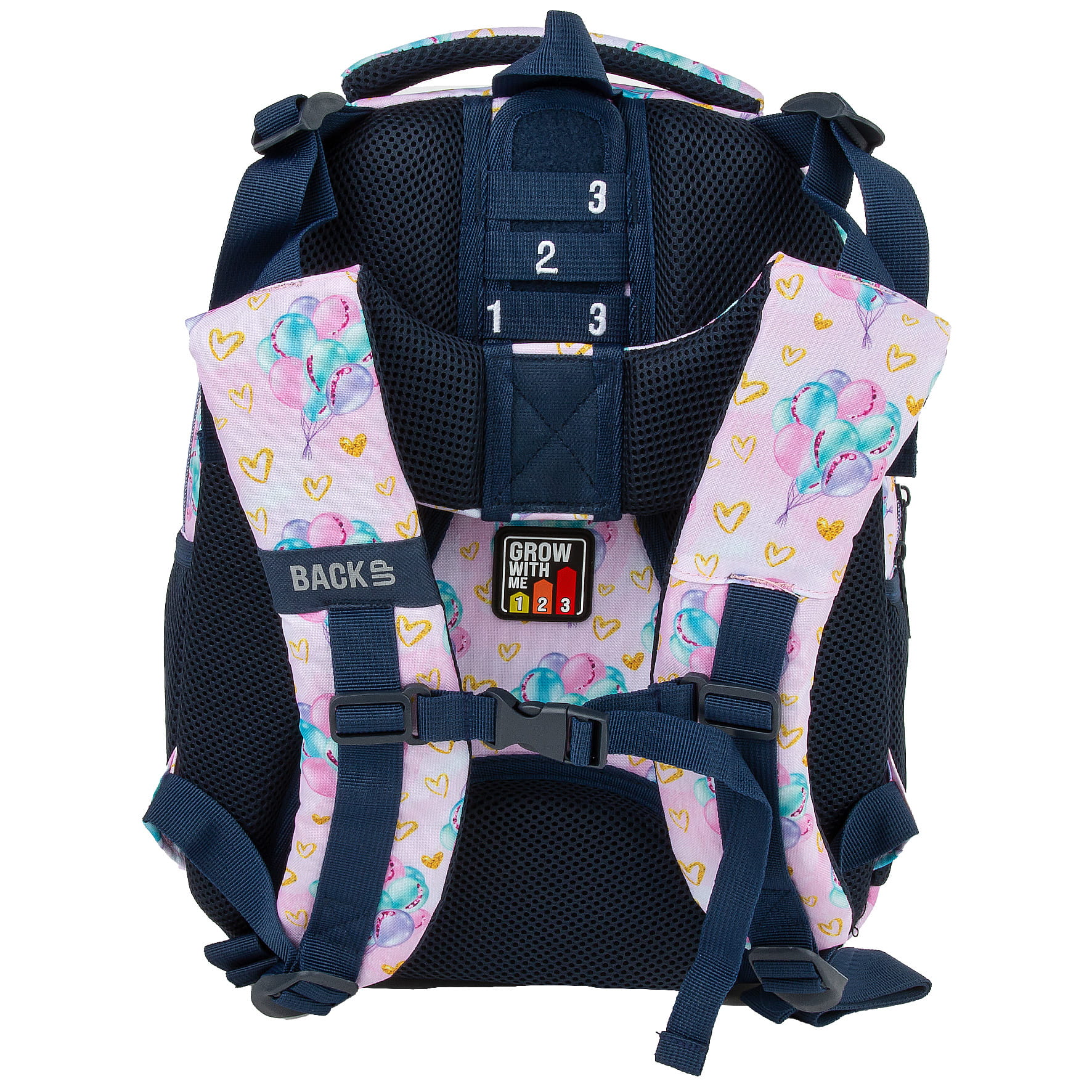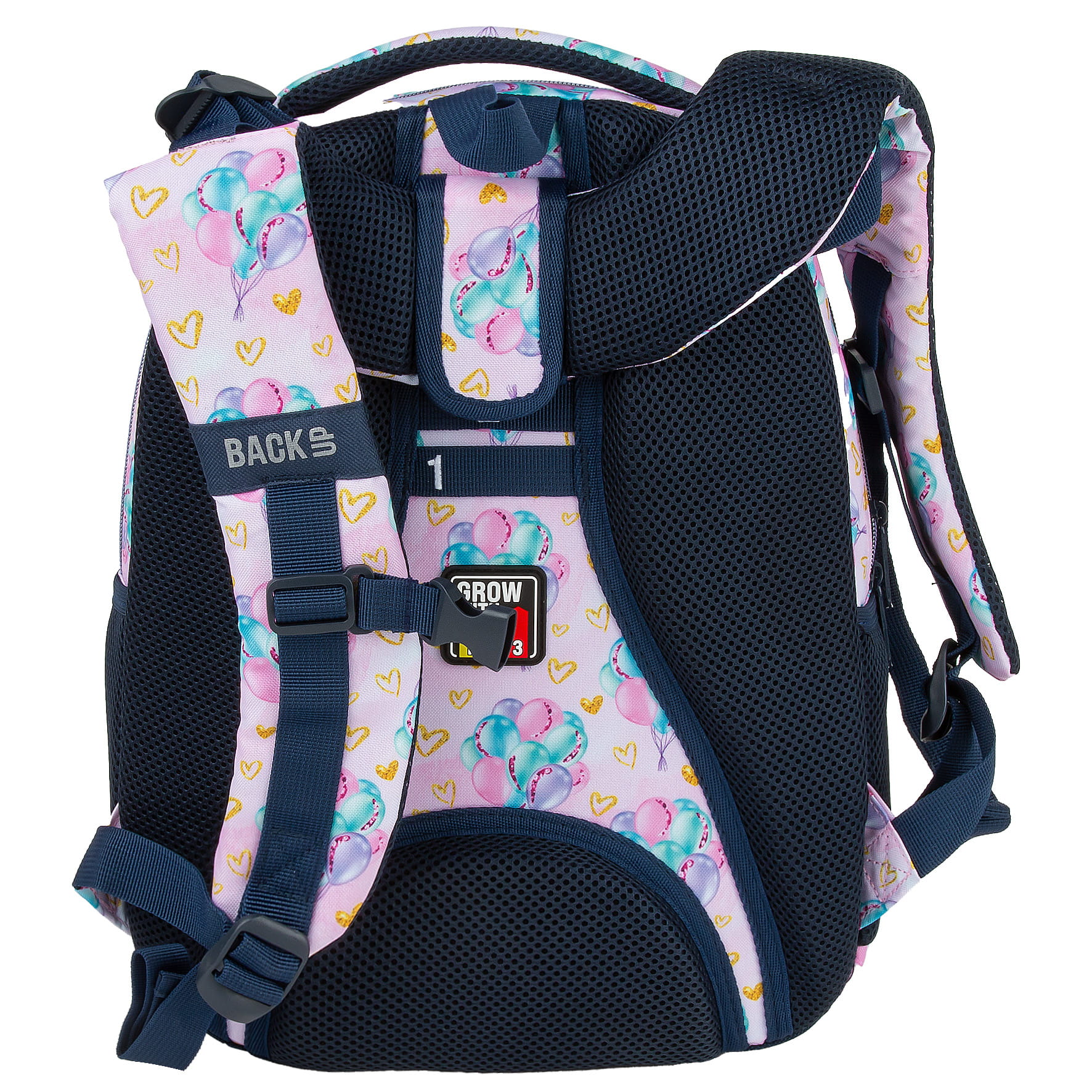 Ten wyjątkowy design łączy w sobie romantyzm z odrobiną blasku. Idealny dla miłośników subtelnych, błyszczących detali. Unoszące się, kolorowe balony nadają prawdziwej lekkości, a złote akcenty dodają magicznego charakteru. To wzór dla dziewczynki, która nie boi się marzyć o dalekich podróżach. Dzięki rozmiarom dopasowanym do drobnej postury dziecka, to idealny plecak dla pierwszoklasisty. Regulacja wysokości szelek – „grow with me” – zapewnia możliwość dostosowania plecaka do rosnącego ciała dziecka, co sprawia, że będzie służył przez długi czas.