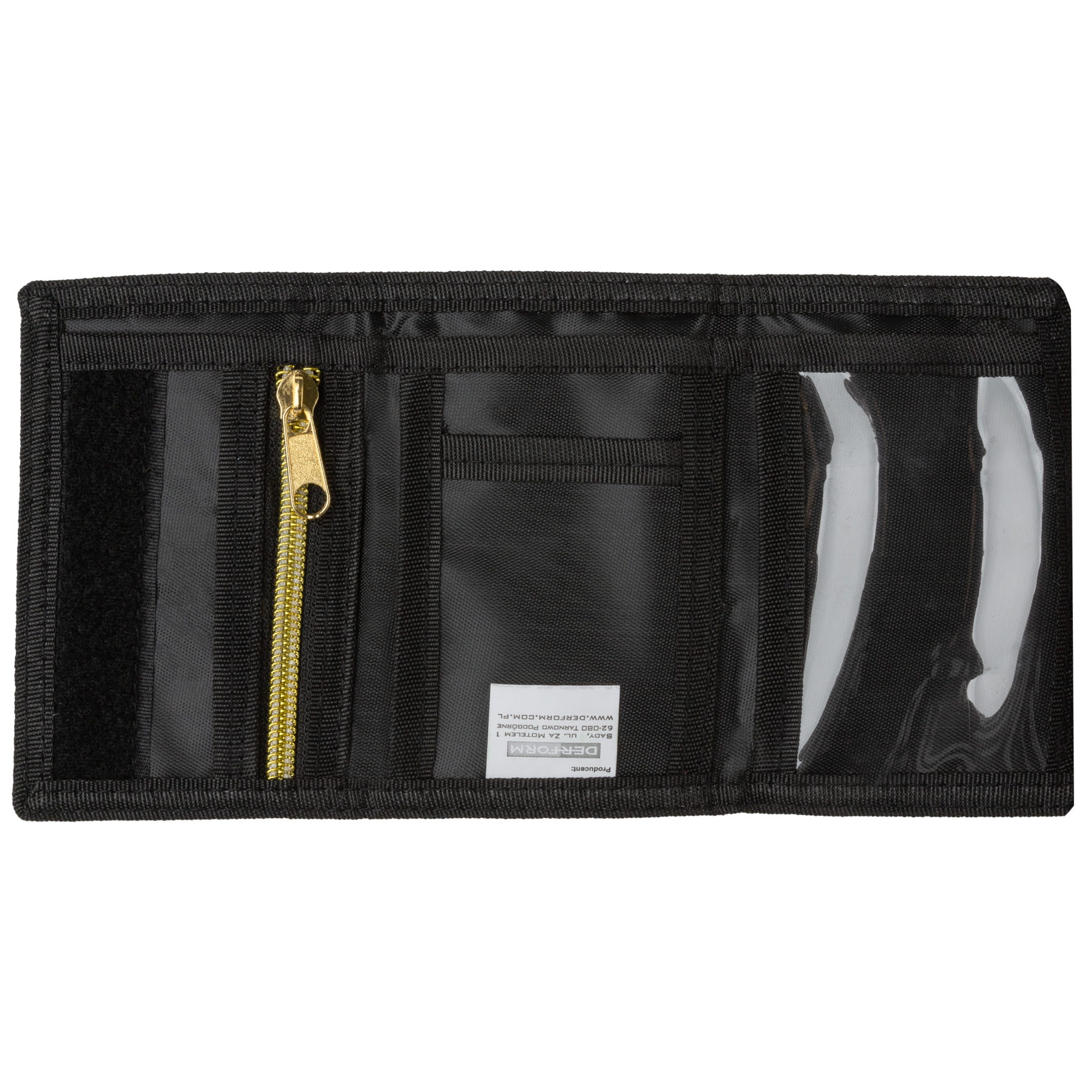 Starannie wykonany portfel zapinany na rzep. W środku znajduje się kieszonka na monety zapinana na zamek, jedna komora na banknoty oraz dodatkowe przegródki np. na dokumenty.