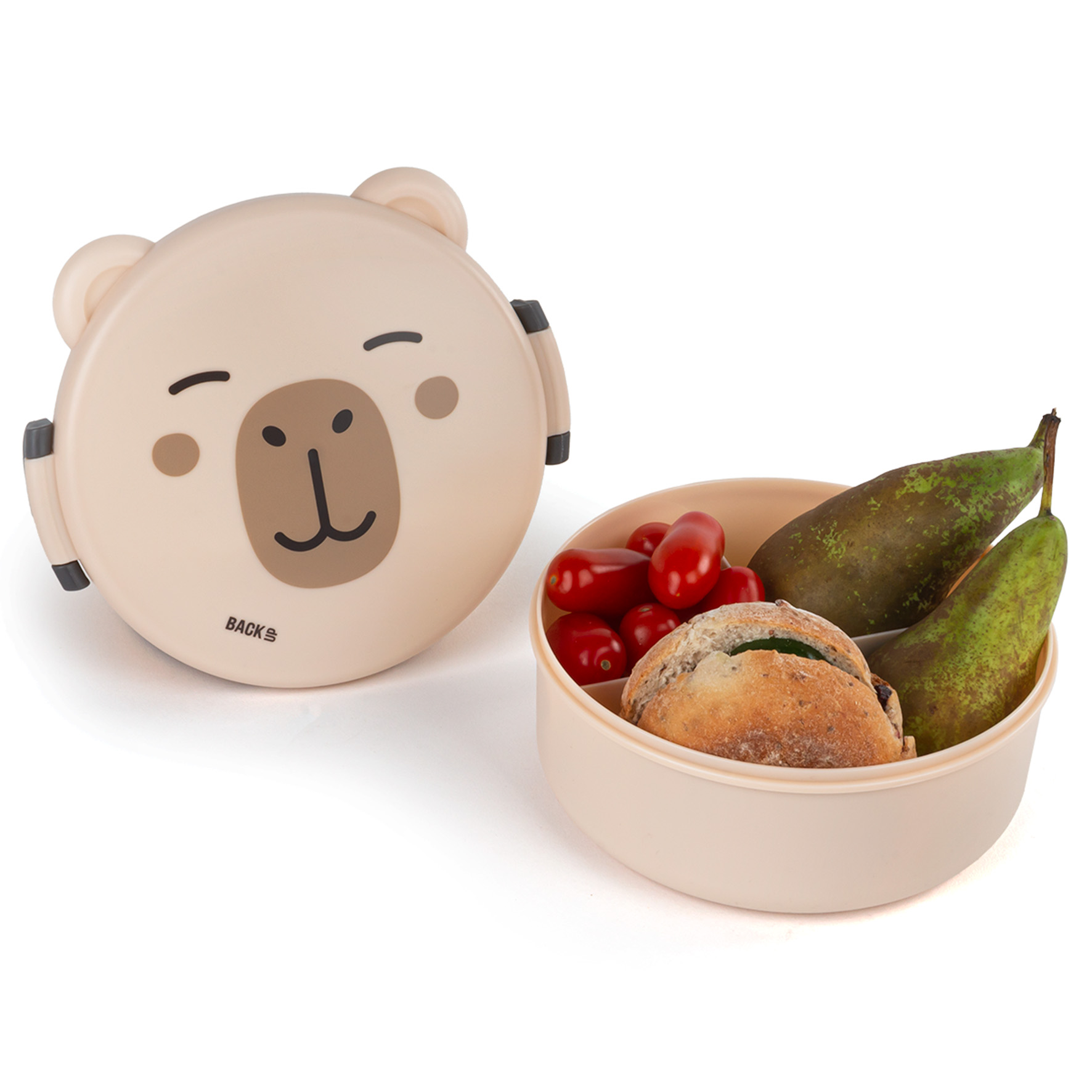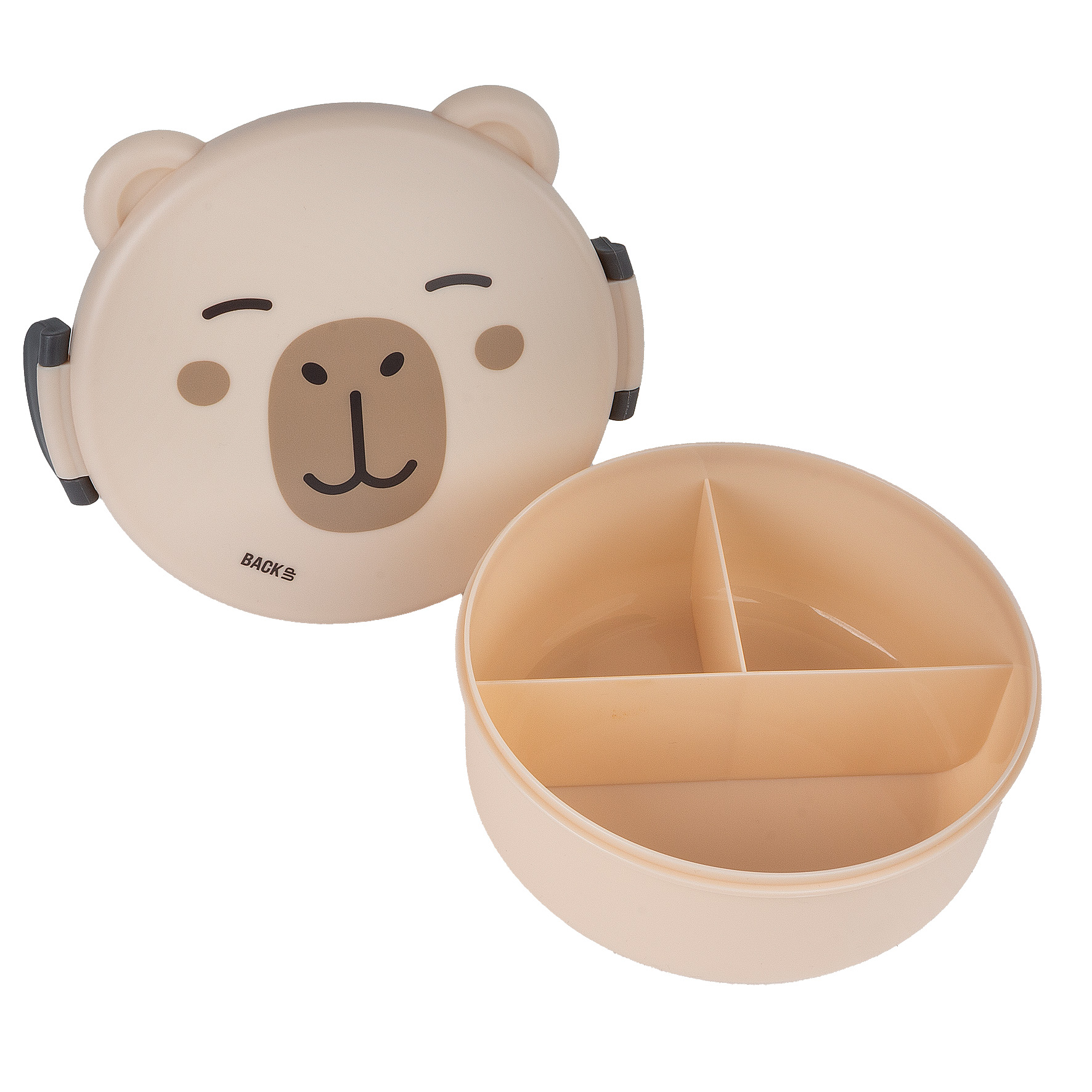 Śniadaniówka w kształcie kapibary to strzał w dziesiątkę dla dzieci! Ma nie tylko zabawny, przyjazny wygląd, ale też bardzo przemyślane wnętrze – podzielone na trzy sekcje, dzięki czemu można łatwo uporządkować kanapkę, warzywa i przekąski bez mieszania się smaków. Zamykana na solidne, boczne klipsy, jest wygodna w obsłudze nawet dla małych rąk. Lekka, kompaktowa i idealna do szkolnego plecaka lub torby na wycieczkę – praktyczna, ale z dużym urokiem.
