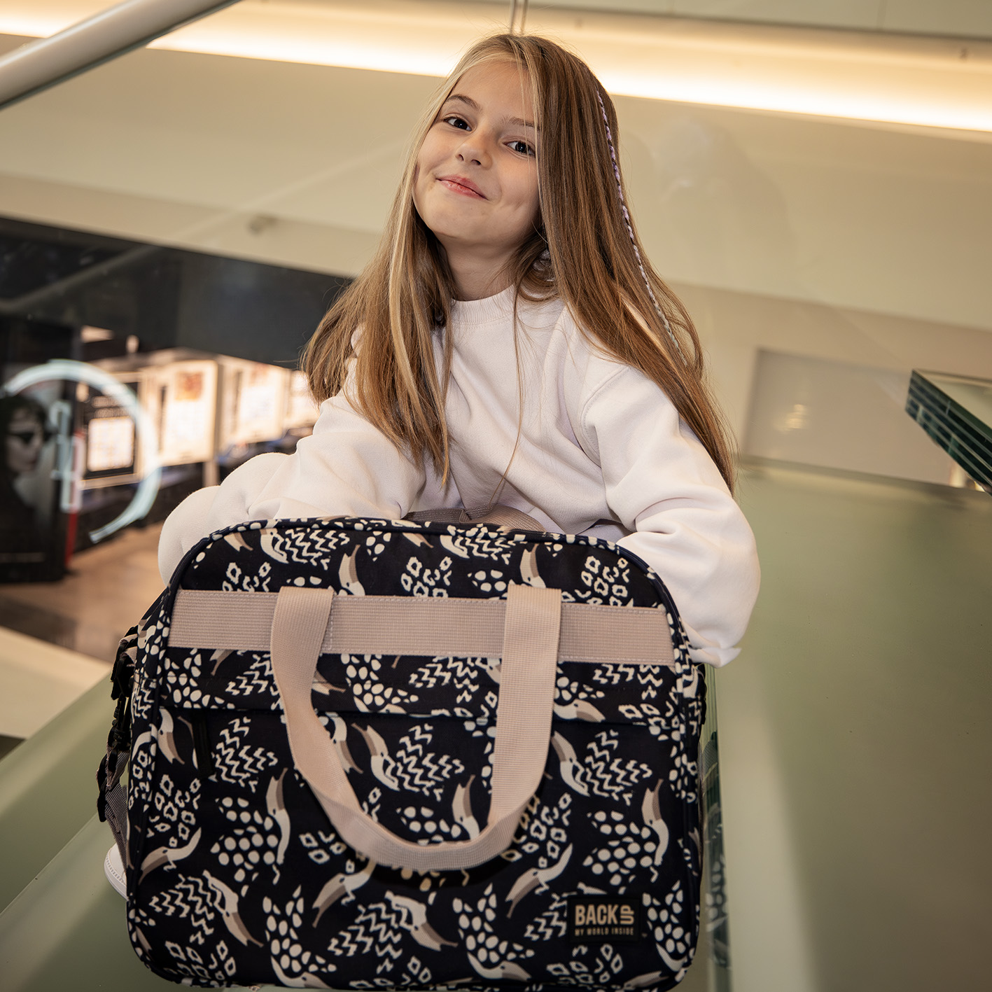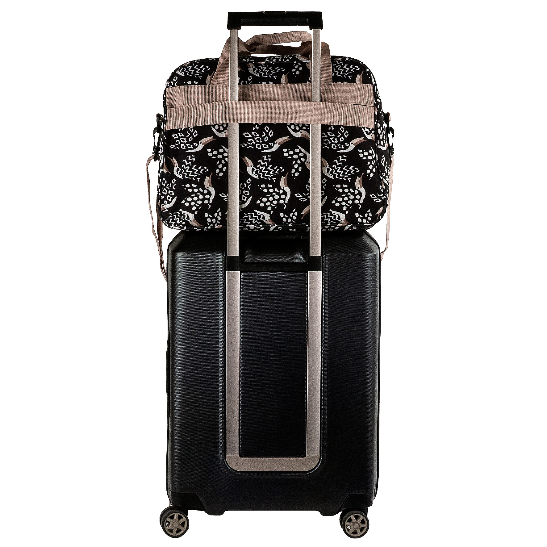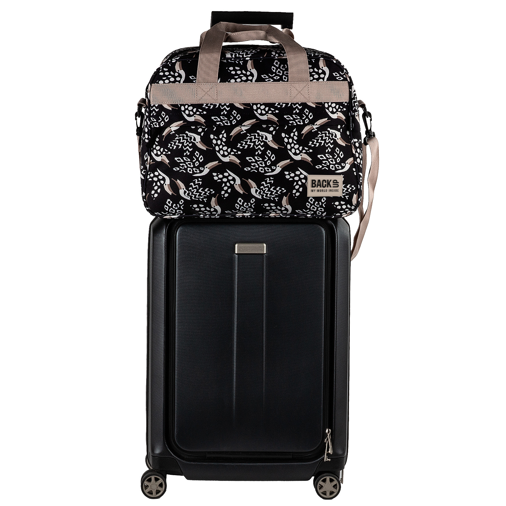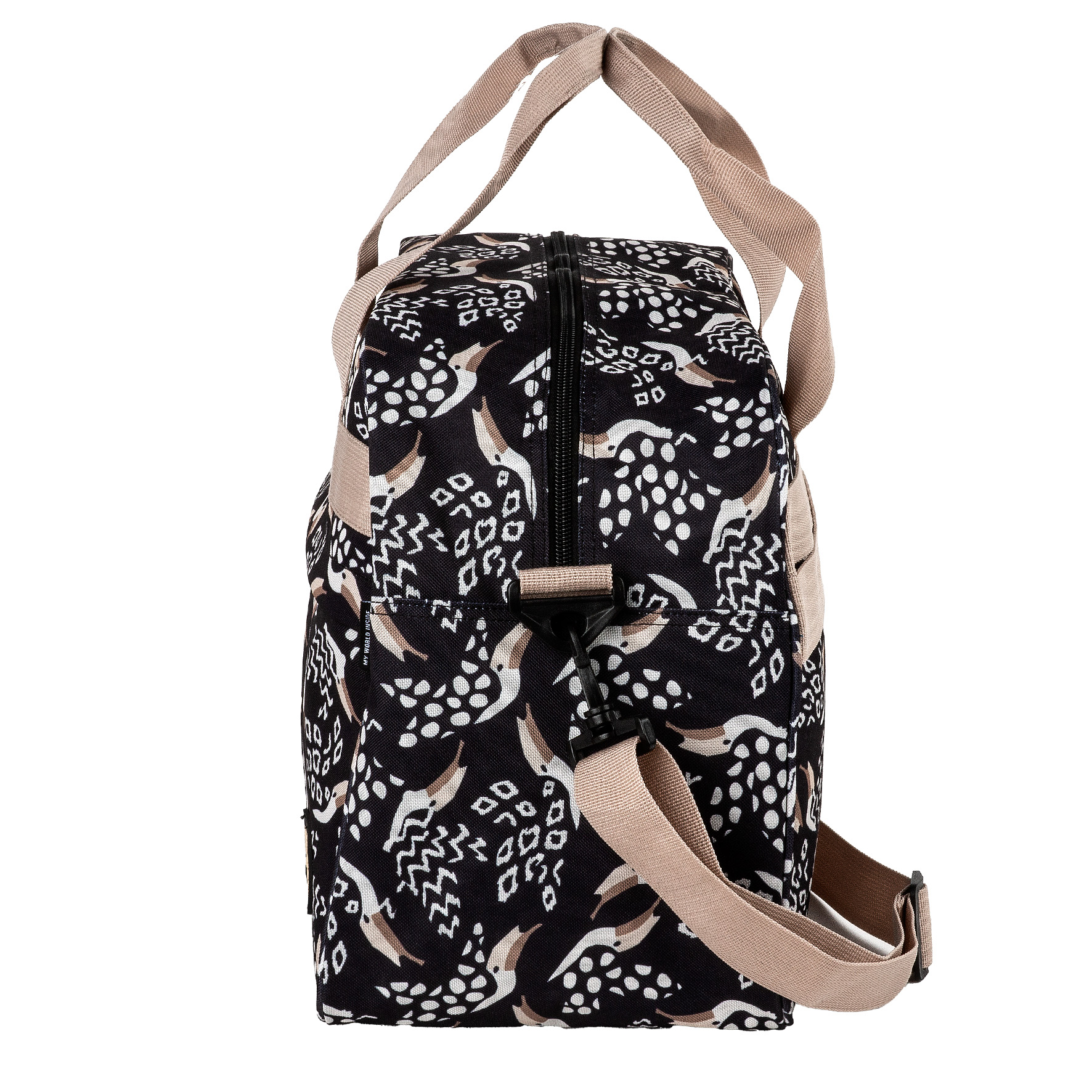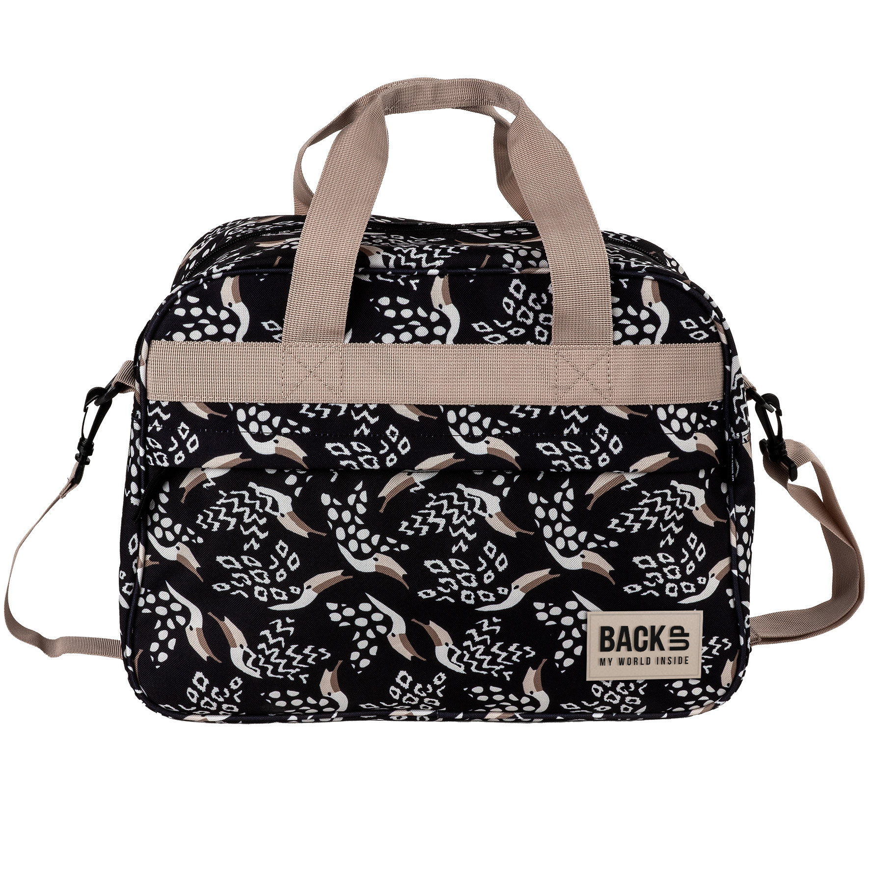 Ta torba to propozycja dla tych, którzy lubią zaskakujące formy. Czerń tła nadaje torbie wyrazisty, graficzny charakter, a wzór stylizowanych tukanów w odcieniach beżu, kości słoniowej i piaskowego brązu dodaje jej wizualnej lekkości i przyciąga uwagę. Beżowe uchwyty i pasek dodają jej elegancji. Zaskakuje pojemnością – mimo kompaktowych wymiarów zewnętrznych z łatwością pomieści rzeczy na trening, jednodniowy wyjazd czy zakupy. Wygodne uchwyty i pasek na ramię pozwalają nosić ją tak, jak Ci wygodnie. Sprawdzi się jako torba na siłownię, do pracy, na weekend, a przede wszystkim jako dodatkowy bagaż podręczny. Świetny wybór dla kobiet, które potrzebują jednego, wielozadaniowego rozwiązania.