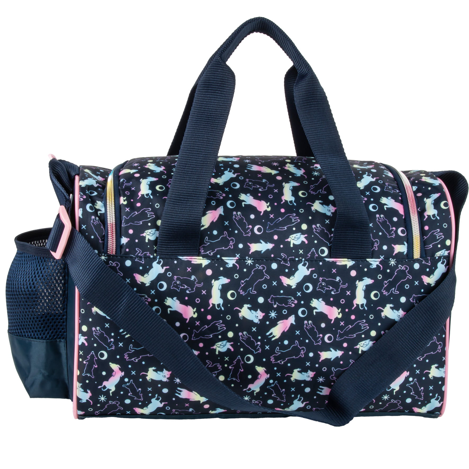 Pojemna torba podróżna z przednią kieszenią, zamykana na zamek. Dodatkowa wewnętrzna klapka pozwala na usztywnienie dna torby. Idealna na basen, zajęcia sportowe, krótką podróż. Posiada regulowany pasek na ramię, dwa uchwyty do noszenia torby w ręce oraz boczną zewnętrzną kieszonkę np. na bidon.