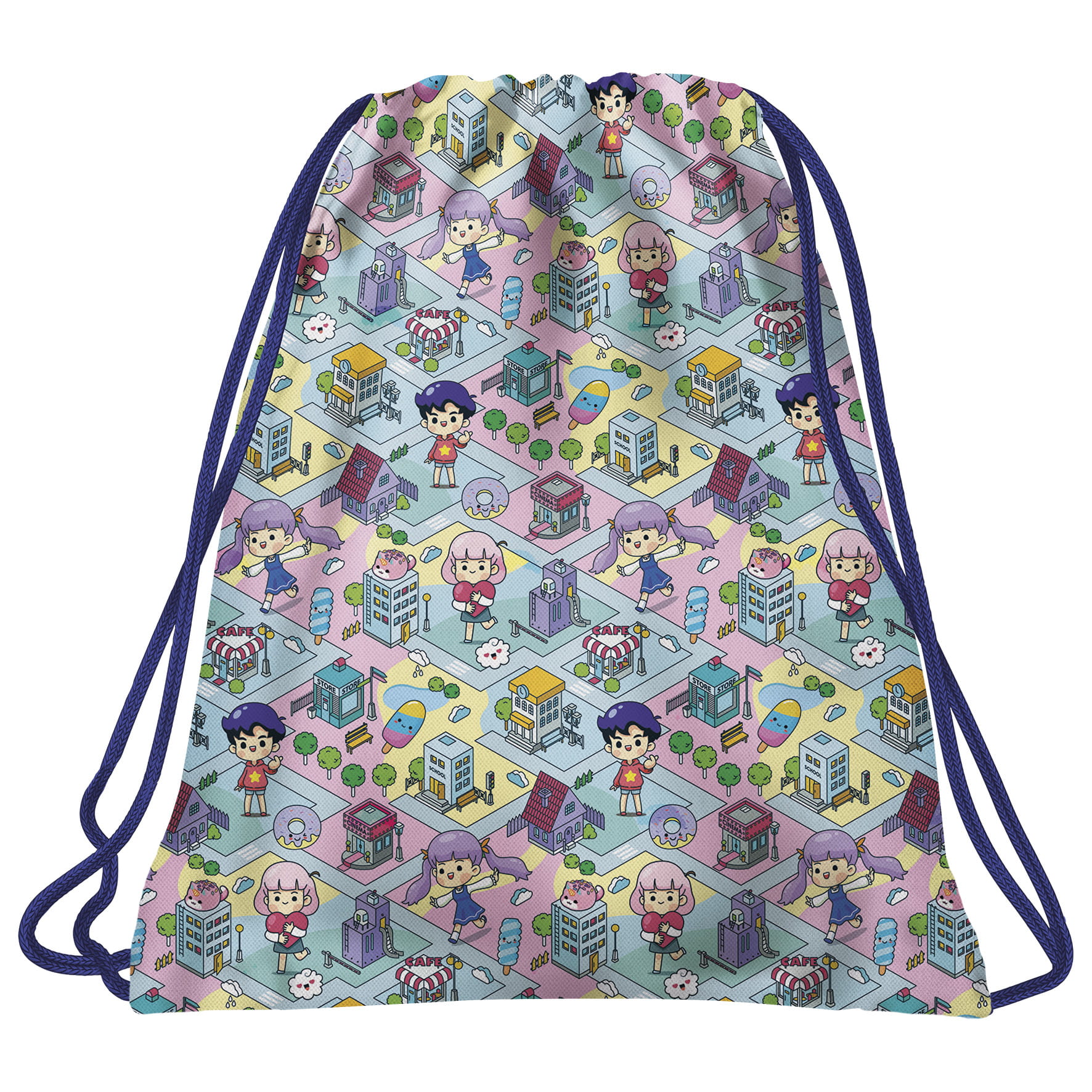 Pastelowy świat gry przeniesiony prosto na worek na buty BackUP! Barwne postacie przemierzają miniaturową, zabawną krainę, napotykając na swojej drodze słodkie donuty, kolorowe lody i urocze zwierzaki. To w połączeniu z granatowymi detalami tworzy wyjątkową, dynamiczną kompozycję. Worek na WF z kolekcji Doll Game stworzony został z myślą o fanach słodkiego stylu - kawaii. Worek BackUP: