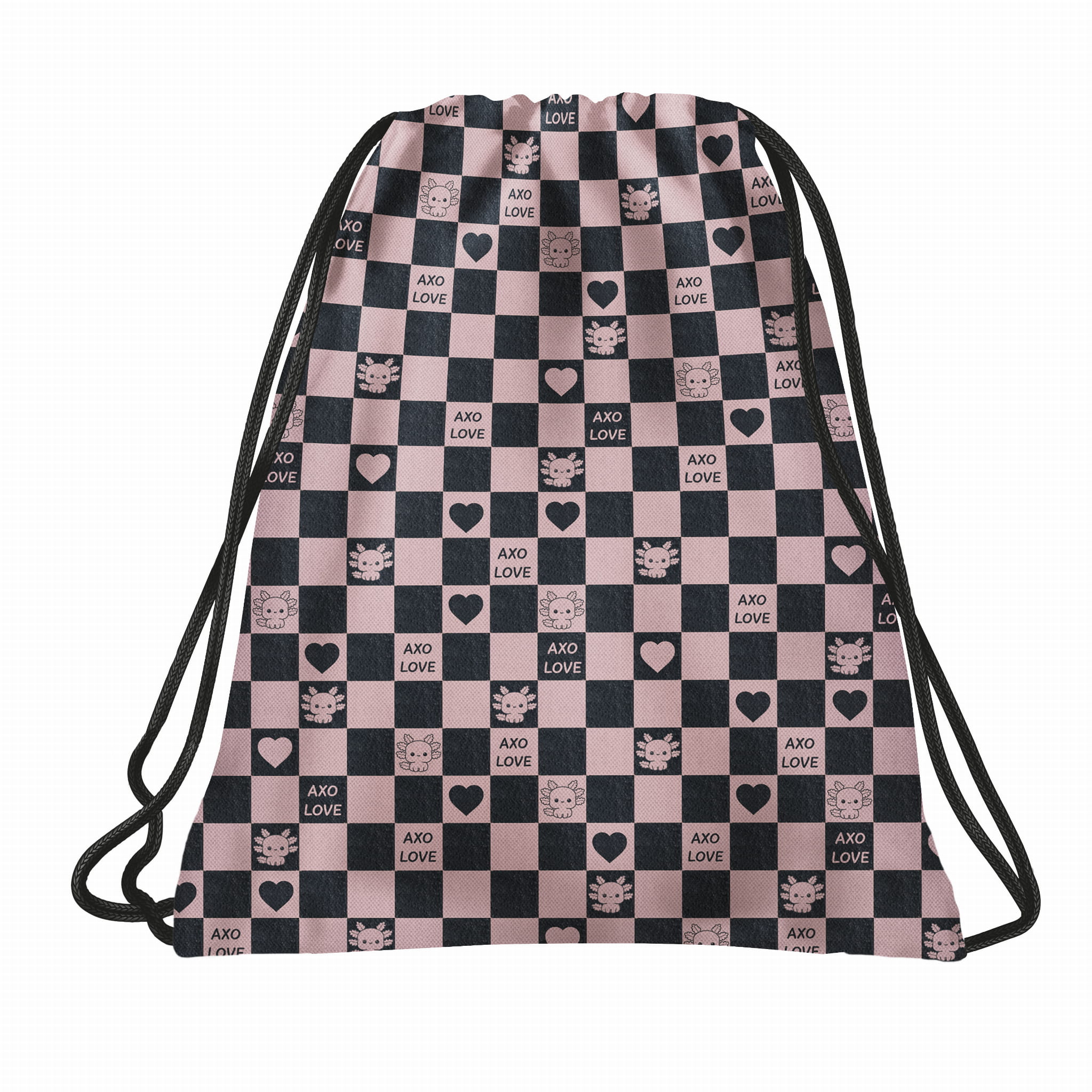 Elegancka szachownica z uroczym akcentem. Połączenie ponadczasowej kratki w jasnym różu z uroczym axolotem tworzy wyjątkowy duet, który podbije serce każdej miłośniczki oryginalnych dodatków. Ten modny worek to idealny wybór dla osób, które chcą wyróżnić się z tłumu i śledzą najnowsze trendy.