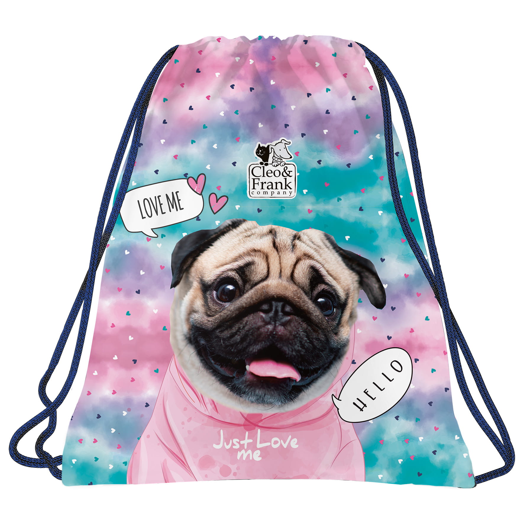 Worek na obuwie, idealny na szkolne treningi i na basen. Dwustronny, posiada podwójne boczne sznurki, które umożliwiają noszenie worka w rękach, na ramieniu czy na plecach. Na odwrocie znajduje się miejsce do wpisania danych osobowych dziecka.